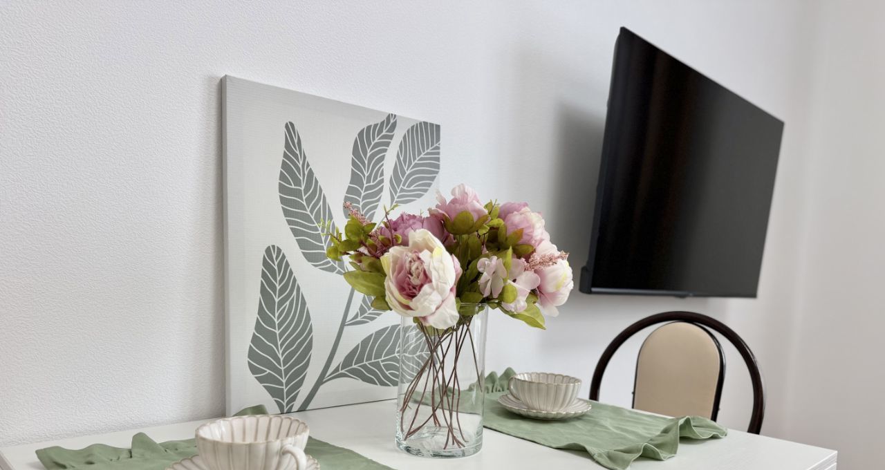 Квартира с косметическим ремонтом, полностью готова к проживанию. В комнатах и на кухне есть необходимая мебель, в том числе холодильник, телевизор и стиральная машина. Ванная комната оборудована ванной. Планировка удобная и функциональная, поэтому можно комфортно разместиться с семьей или друзьями.