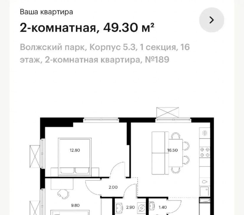 2-к кв. Москва 1-й Грайвороновский проезд, 3Ак3 (49.3 м²)