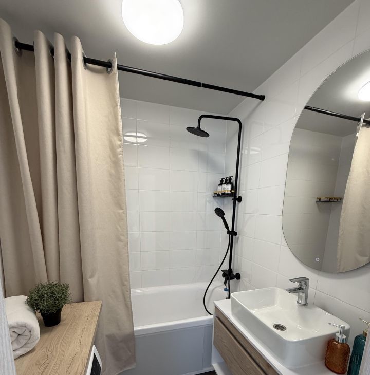 В квартире уже есть все для комфортного проживания и все это новое: посуда, постельное белье, полотенца, сушилка, фен, пылесос, гладильная доска, утюг и тд.