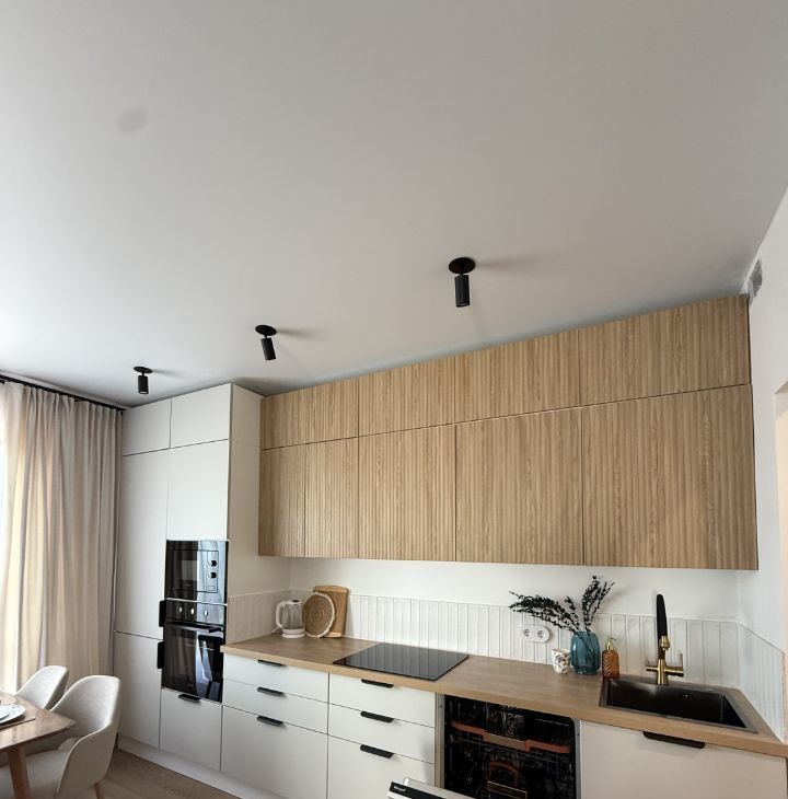 Кухонный гарнитур на доводчиках с бесшумным закрыванием ;