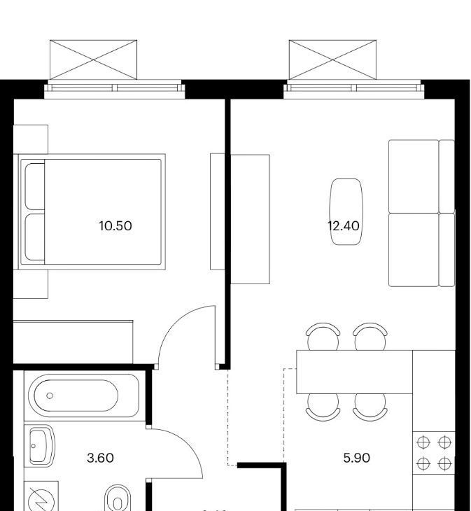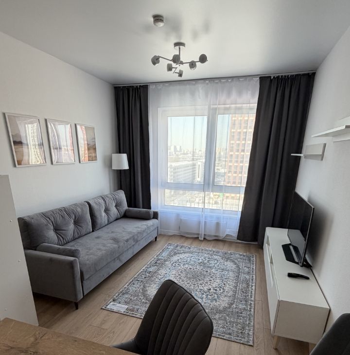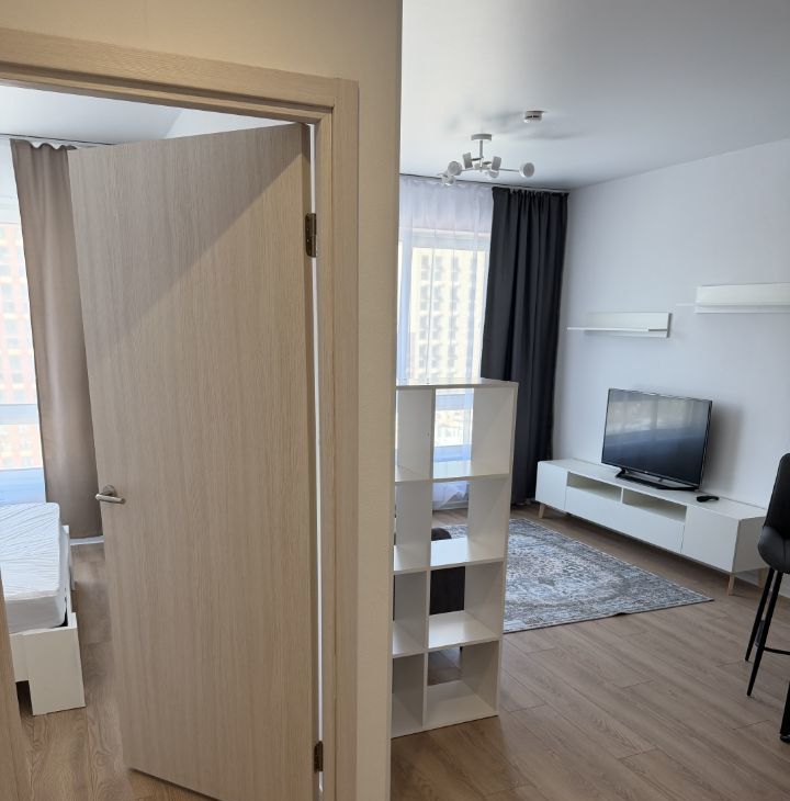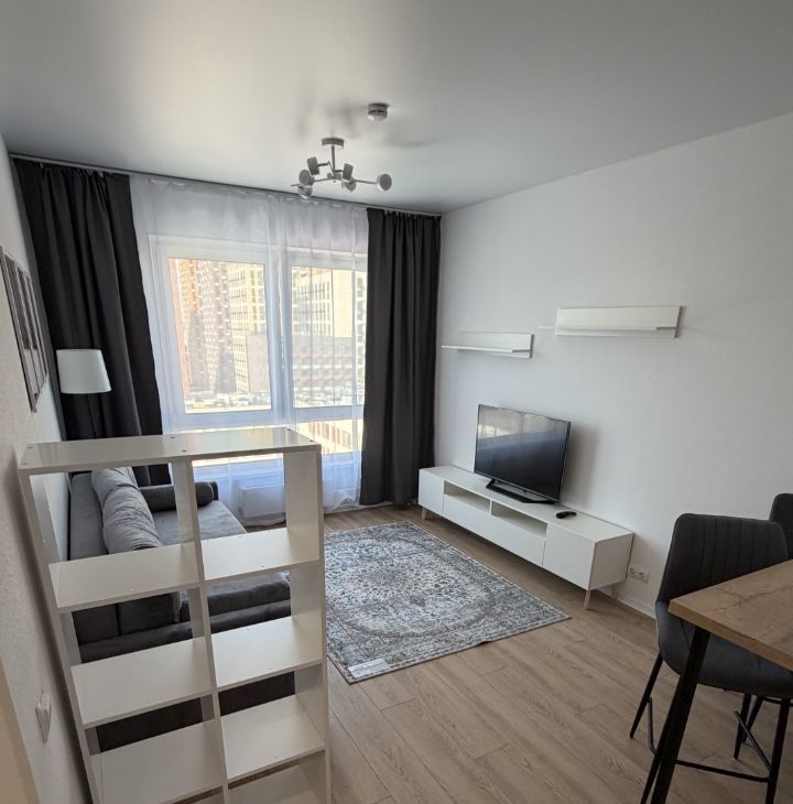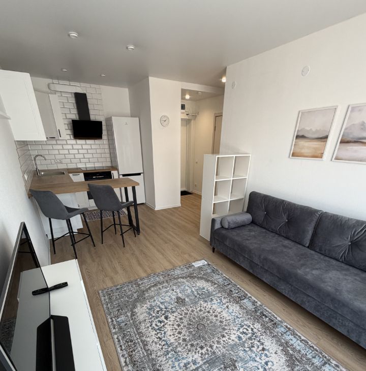 Квартира просторная для своего формата, удобная кухня-гостиная и отдельная спальня.