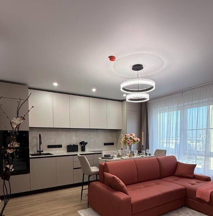 Квартира полностью готова к проживанию - новый ремонт, новая мебель и техника, тихая сторона. Пространство продумано так, чтобы было комфортно и жить, и отдыхать. Удобная планировка: отдельные комнаты, большая кухня-гостиная с отдельным столом и большим акцентным диваном, раздельный санузел, ванна.