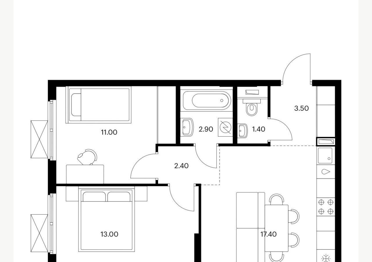 Сдается стильная инстаграмная евродвушка 52.6 кВ.м в ЖК Волжский парк.