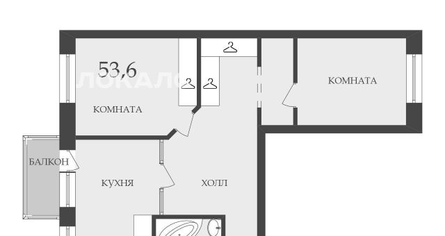 Просторная кухня с выходом на балкон, коридор, две изолированные комнаты, ванная комната, холл.