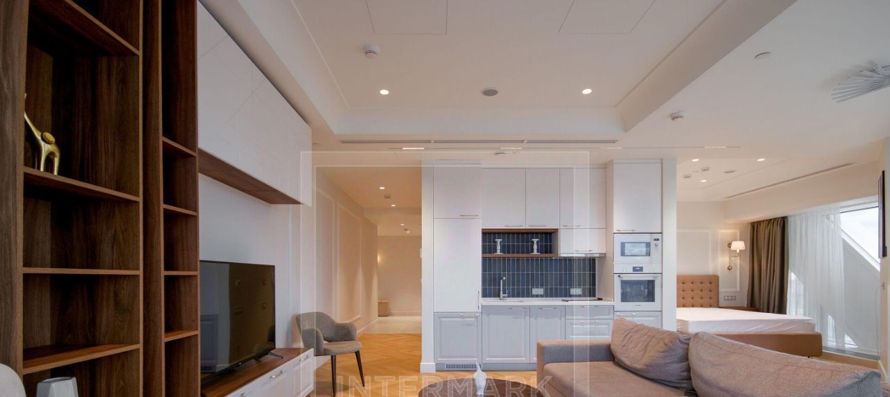 В квартире: С мебелью, Посудомоечная машина, Стиральная машина, Бойлер, Кондиционер, Видеонаблюдение, Охрана, Интернет, Видовая квартира, Можно с детьми, Можно с животными, Европланировка, Интерьер в современном стиле, Консьерж, Апартаменты, Гардеробная комната, Лифт, Ремонт - дизайнерский, Кухонная мебель, Окна на улицу, Окна во двор