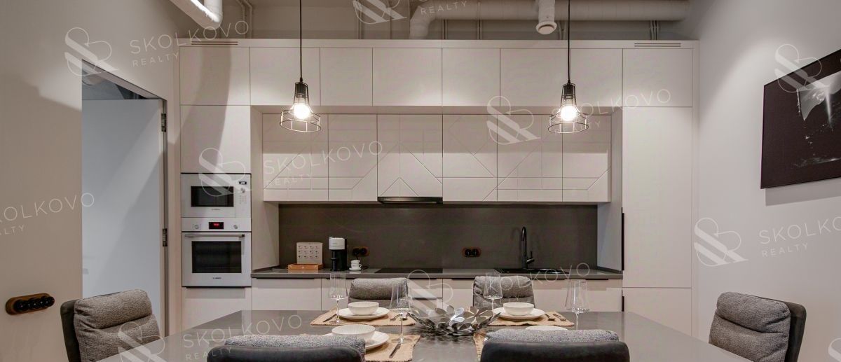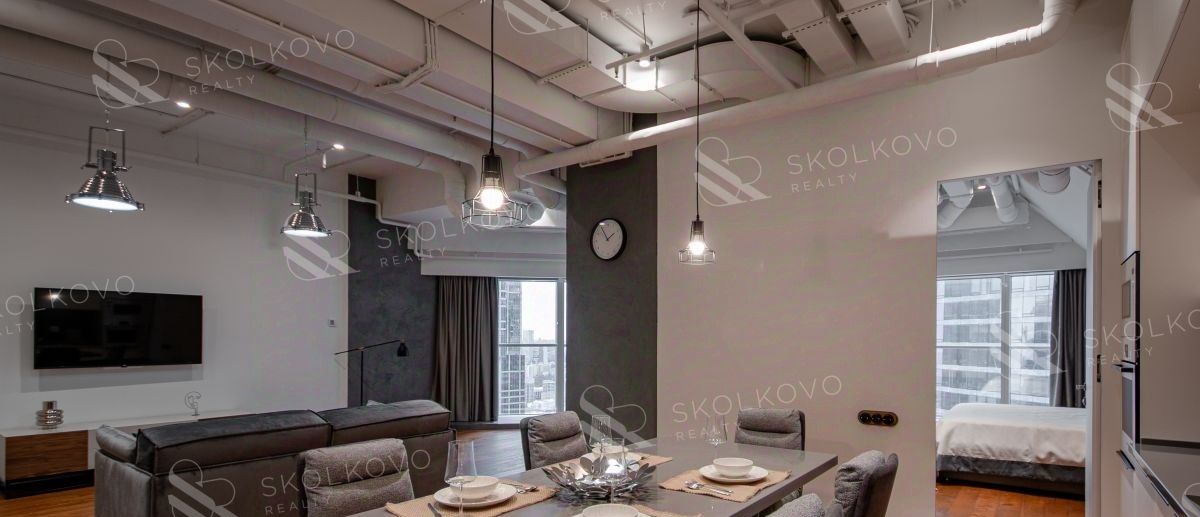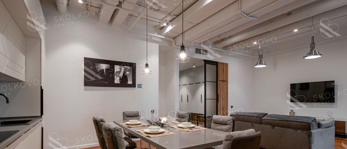 В квартире выполнен свежий дизайнерский ремонт. Дизайн-проект выполнен в стиле лофт. Квартира укомплектована премиальной бытовой техникой.