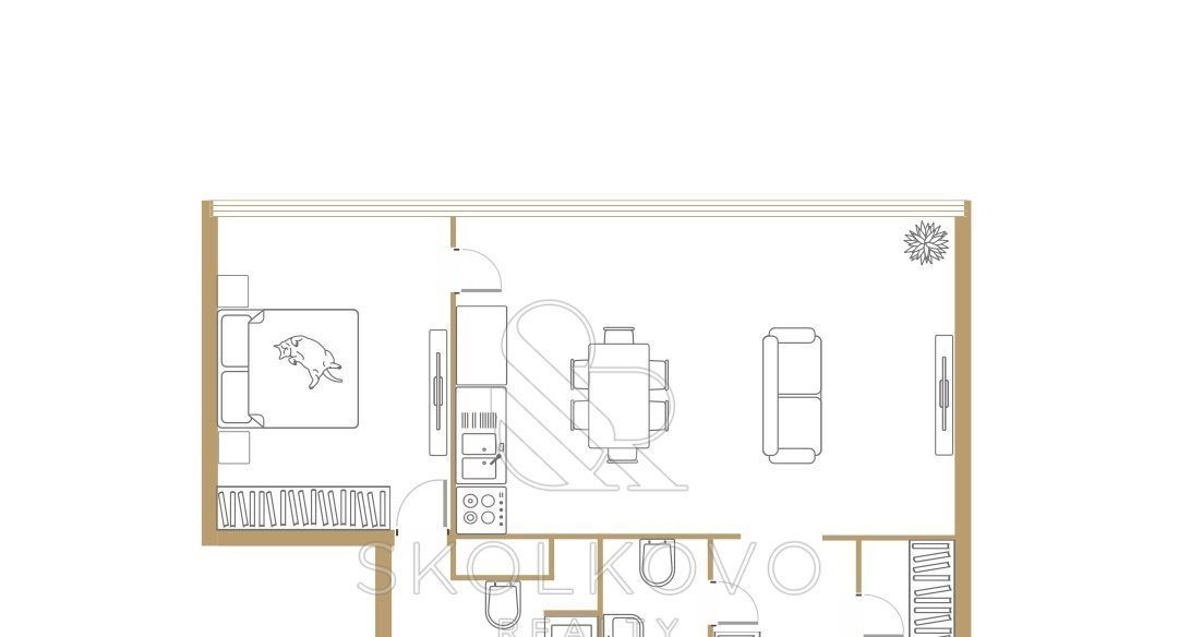 Планировка: спальная комната, кухня совмещенная с гостиной ,ванная комната. В спальне двуспальная KING-size кровать .Ванная комната выполнена в современном и необычном цветовом решении.