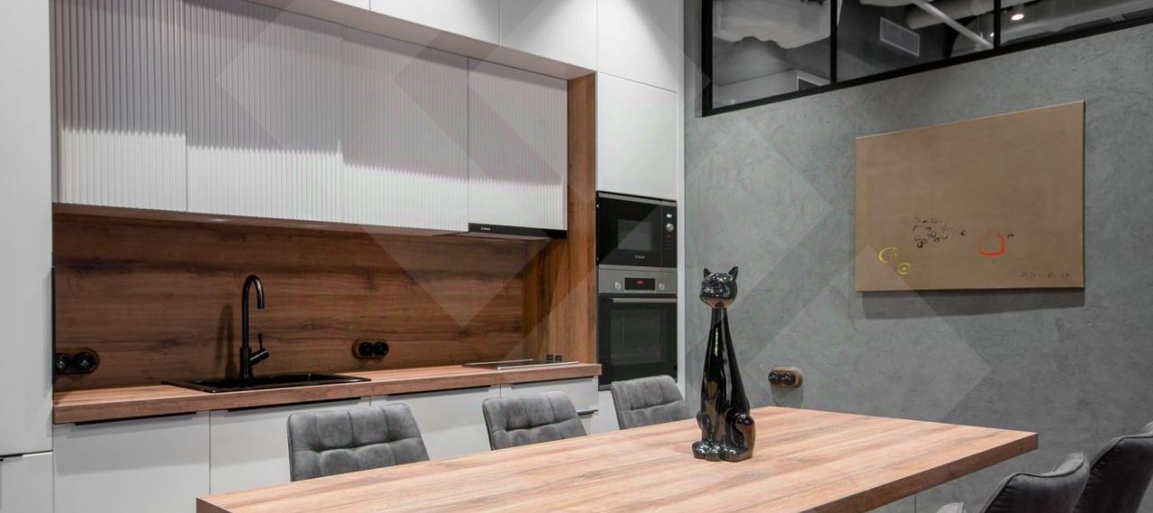 Апартаменты состоят из: просторной кухни-столовой-гостиной, одной спальни, двух полноценных санузлов, гардеробной.