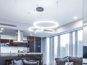 Панорамное остекление открывает захватывающие виды на столицу, наполняя пространство естественным светом и энергией.