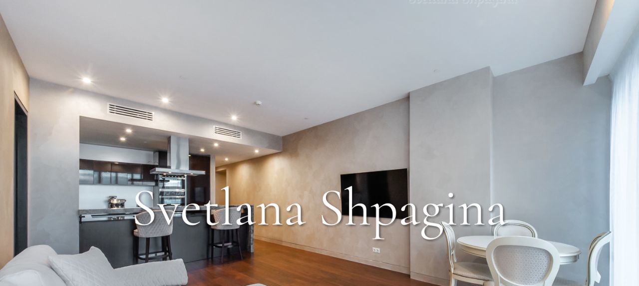 В квартире есть всё необходимое для комфортной жизни: стильная мебель, современная бытовая техника, включая кондиционер, холодильник, посудомоечную и стиральную машины, а также телевизор. Планировка продумана до мелочей: просторная кухня-гостиная и две уютные спальни. В каждом из двух санузлов есть ванна и душевая кабина, что удобно для большой семьи или гостей.