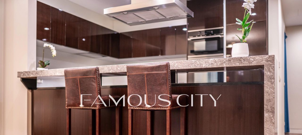 Кухня укомплектована итальянским кухонным гарнитуром и техникой Kuppersbusch.