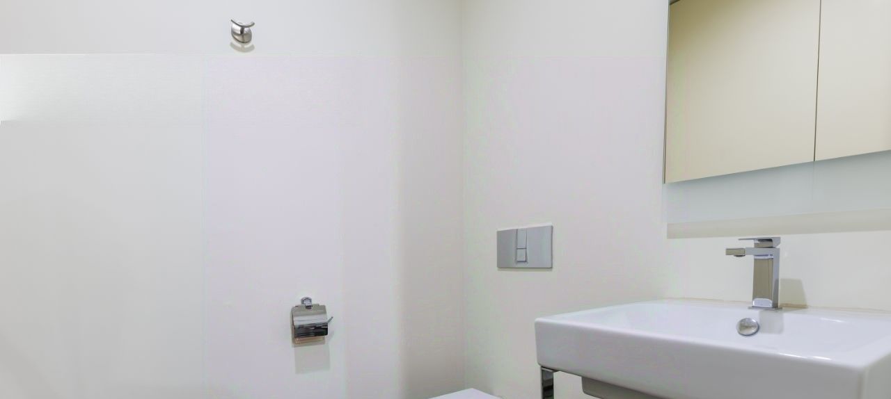 Гостевой санузел на входе, чтобы ваши гости чувствовали себя комфортно.