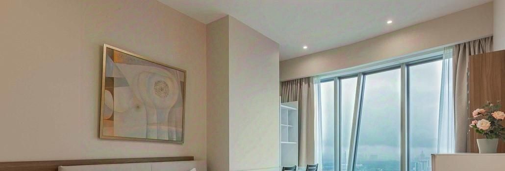 Апартамент с высококачественным ремонтом в идеальном состоянии, на высоком этаже с видами на город и закат.