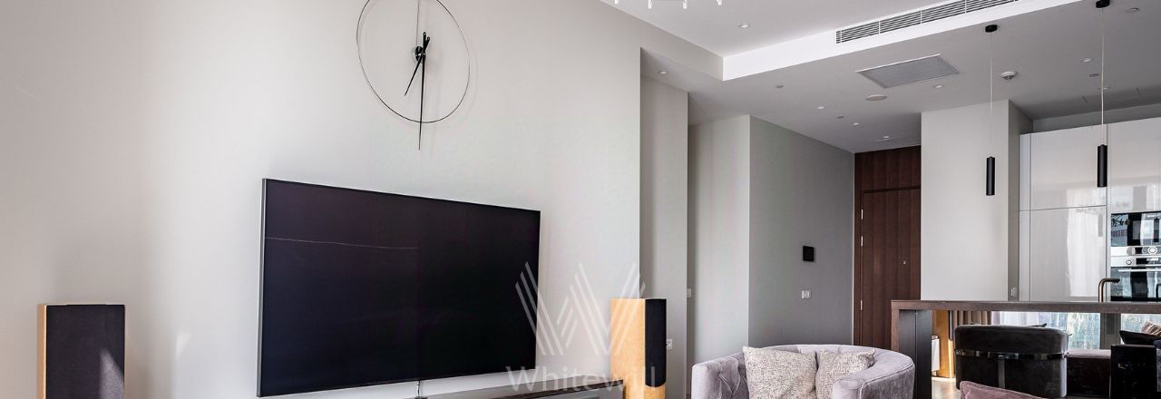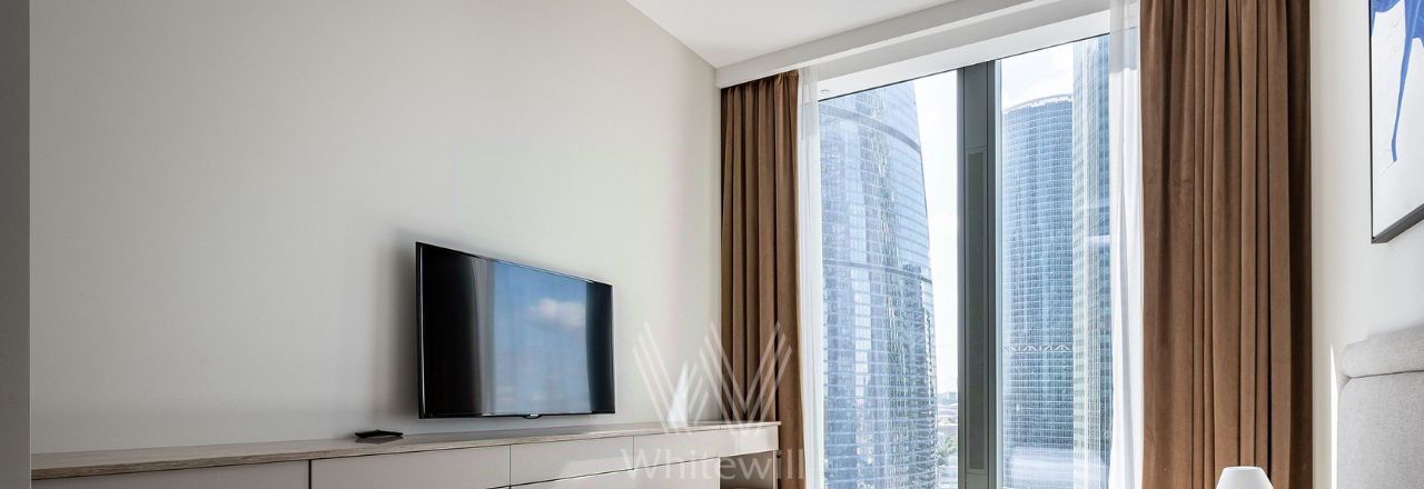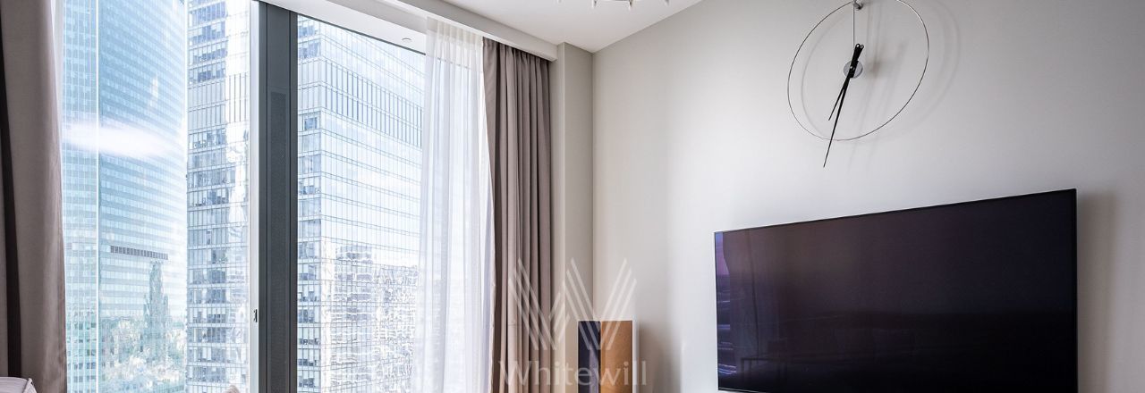 Светлые апартаменты с 1-й спальней общей площадью 61 м² в комплексе небоскрёбов премиум-класса Neva Towers на 20-м этаже. Выполнена премиальная отделка, интерьер оформлен в современном стиле в лаконичных светлых тонах. Апартамент полностью укомплектован мебелью, техникой и предметами декора. Планировка: кухня-гостиная со встроенной техникой Bosch, спальня со встроенным гардеробом, ванная комната. Из панорамных окон открываются виды на башни делового центра "Москва-Сити".