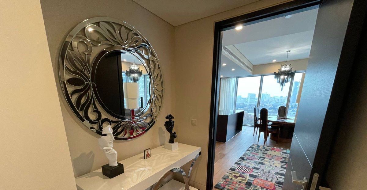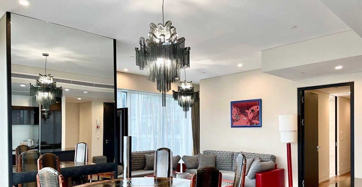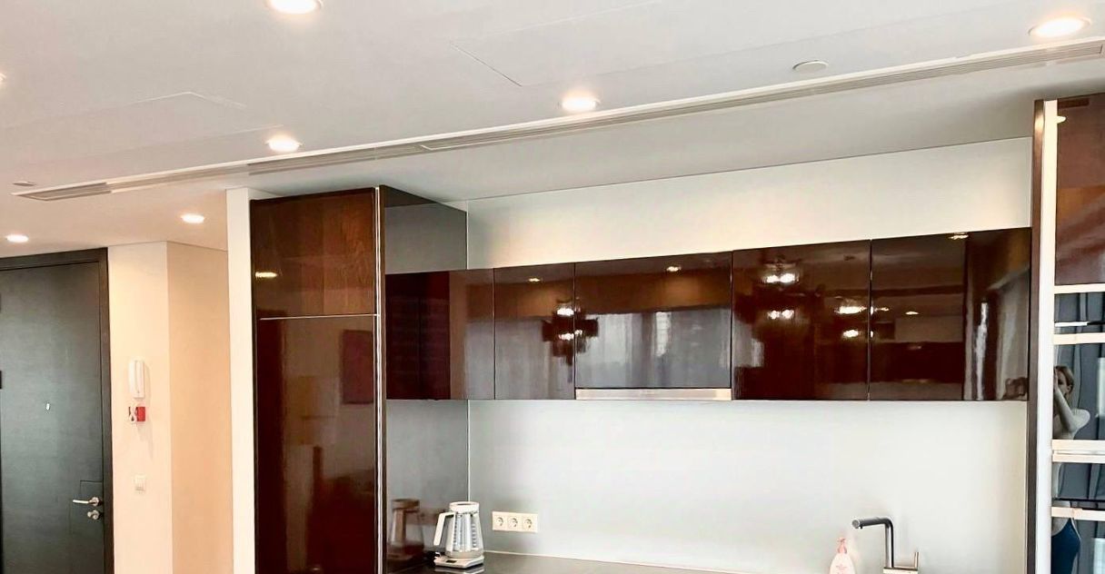 В квартире выполнен дизайнерский ремонт с использованием качественных материалов. Просторная кухня оборудована всей необходимой техникой: холодильник, посудомоечная машина и кондиционер. В комнатах есть удобная мебель для комфортного проживания. Санузел раздельный: в одном есть ванна, в другом — душевая кабина, поэтому можно выбирать, что удобнее.