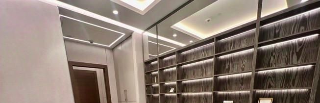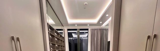 Планировка: гостиная с кухней, спальня, полноценный санузел с ванной, просторная гардеробная, кабинет, гостевой санузел с душем.