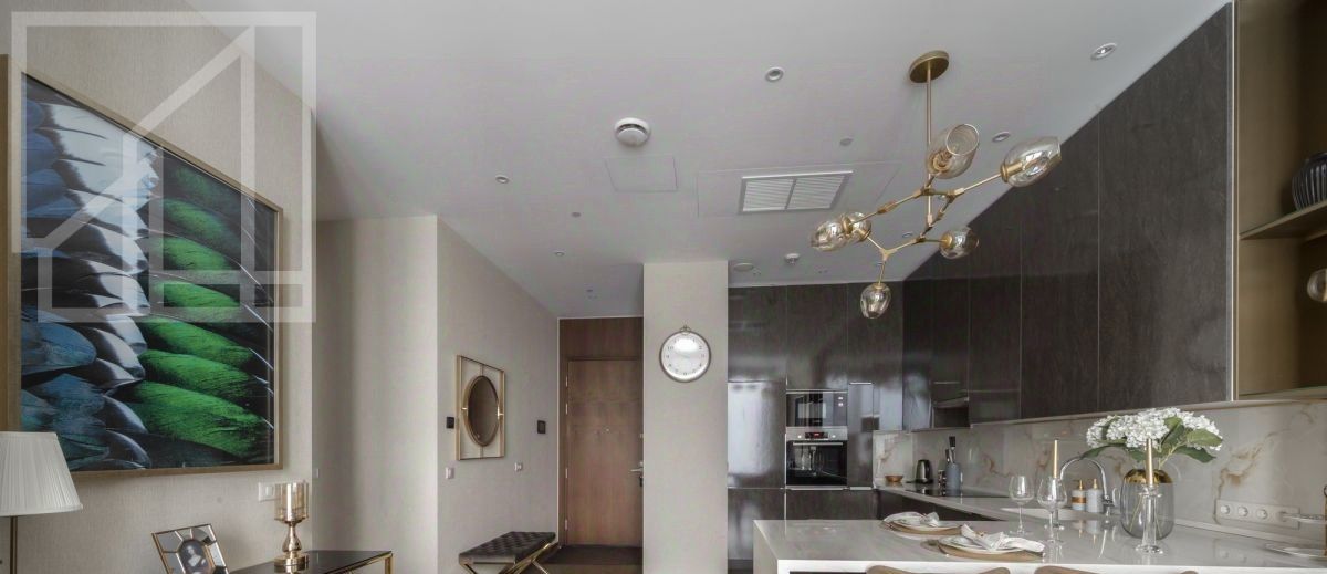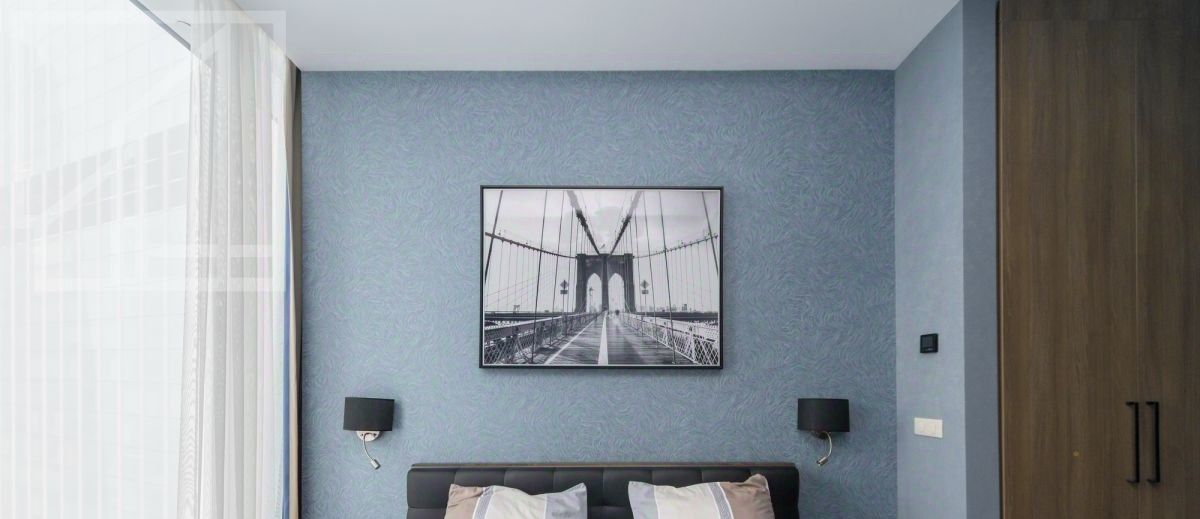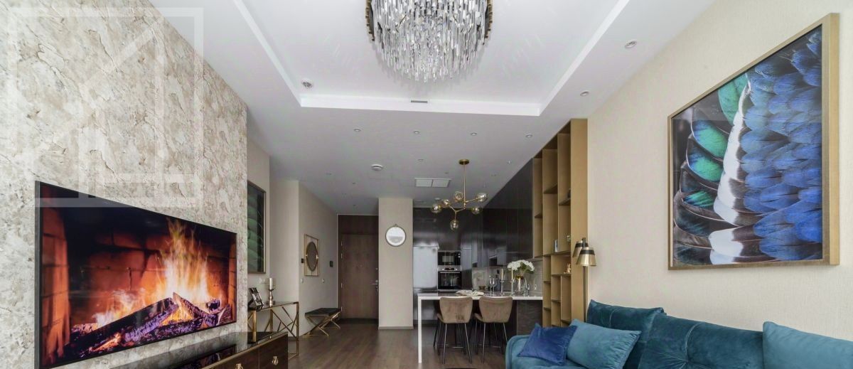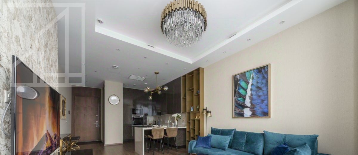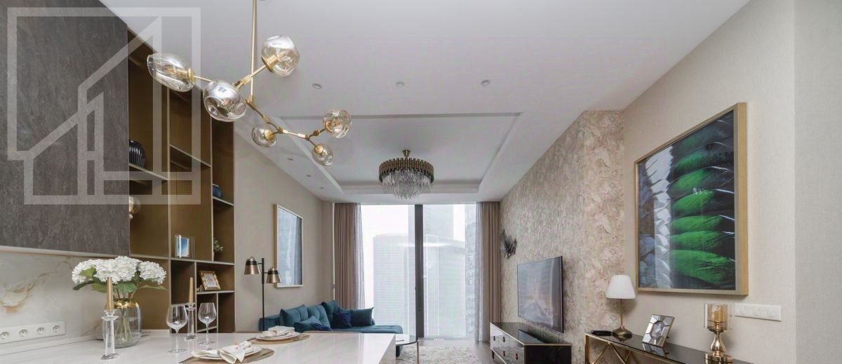 Выполнена отделка в стиле современной классики с элементами ар-деко, апартамент меблирован и оснащен качественной бытовой техникой и сантехникой премиум-класса. Из окон открывается вид на небоскребы ММДЦ "Москва-Сити".