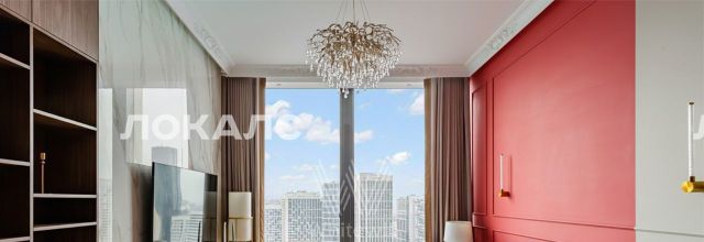 Главное о локации. Жизнь здесь сосредоточена в самом сердце Москва-Сити. Утро можно начать с прогулки по набережной или короткой дороги в детский сад 2112 — всего 10 минут пешком. Старшие дети учатся в "Школе будущего" 2030, школе 1726 или английской школе 1232. Днём удобно заглянуть в "Афимолл" за покупками, в супермаркет "Перекрёсток" или на тренировку в фитнес-центр World Class. Вечером жители выбирают рестораны и кафе торговой галереи или концерты и события в деловом квартале. Метро "Международная" и аэроэкспресс в аэропорт Домодедово находятся в трёх минутах ходьбы, а выезд на ТТК и Звенигородское шоссе делает передвижения быстрыми.
