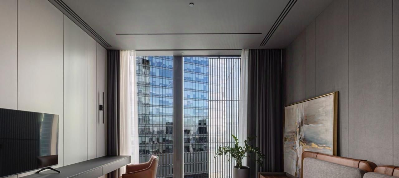 Апартамент угловой. Расположен на 38-м этаже с панорамными видами на город и сити.