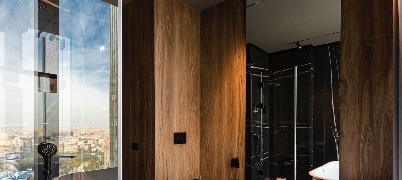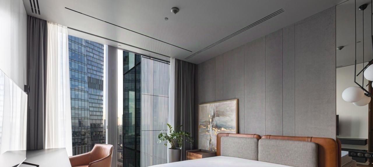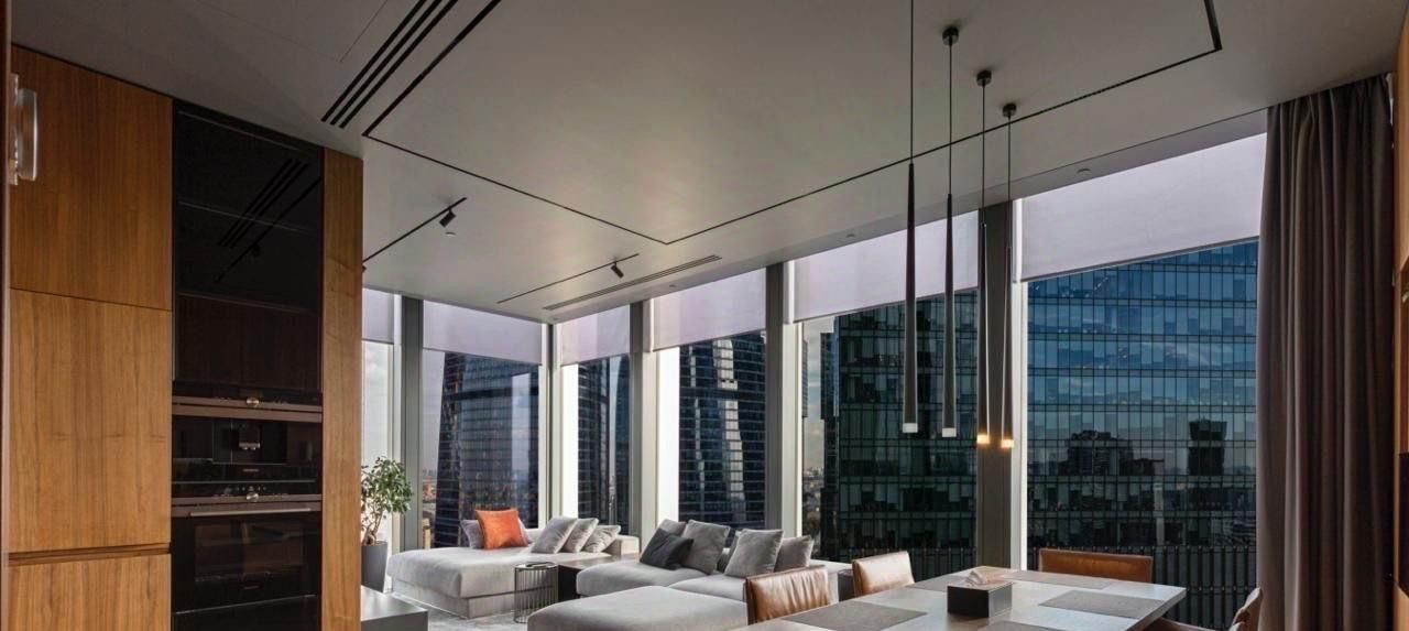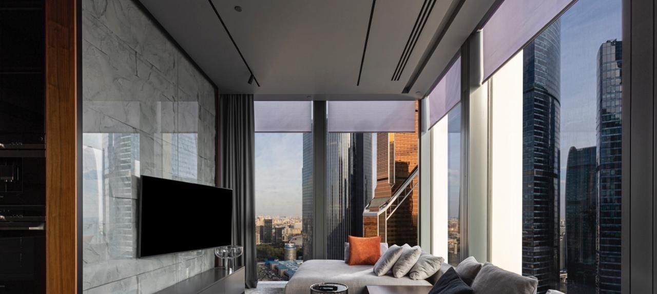 Апартамент угловой. Расположен на 38-м этаже с панорамными видами на город и сити.