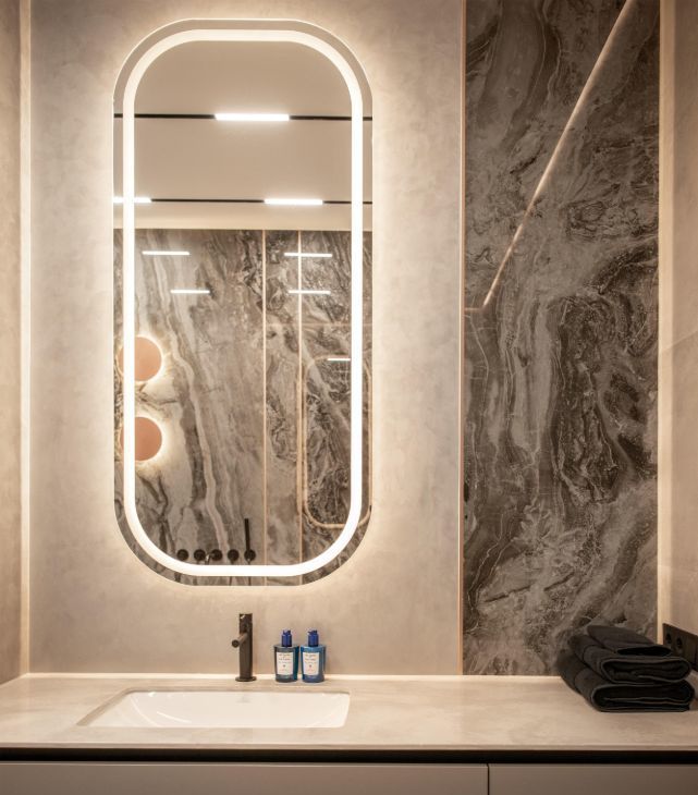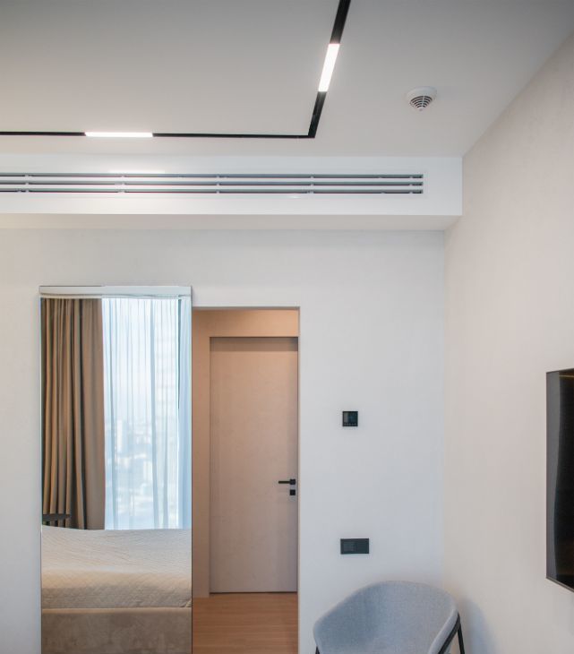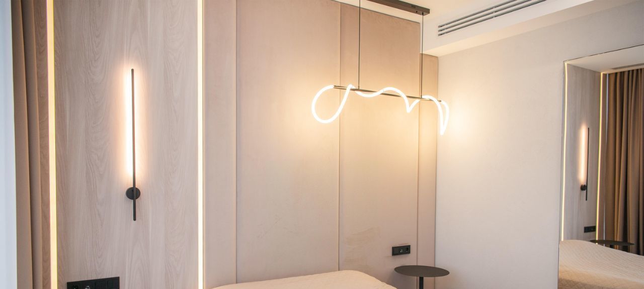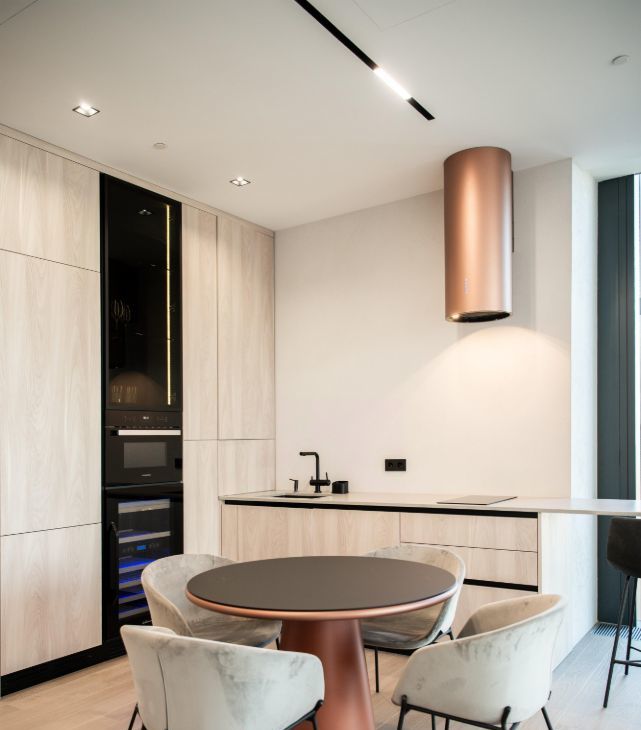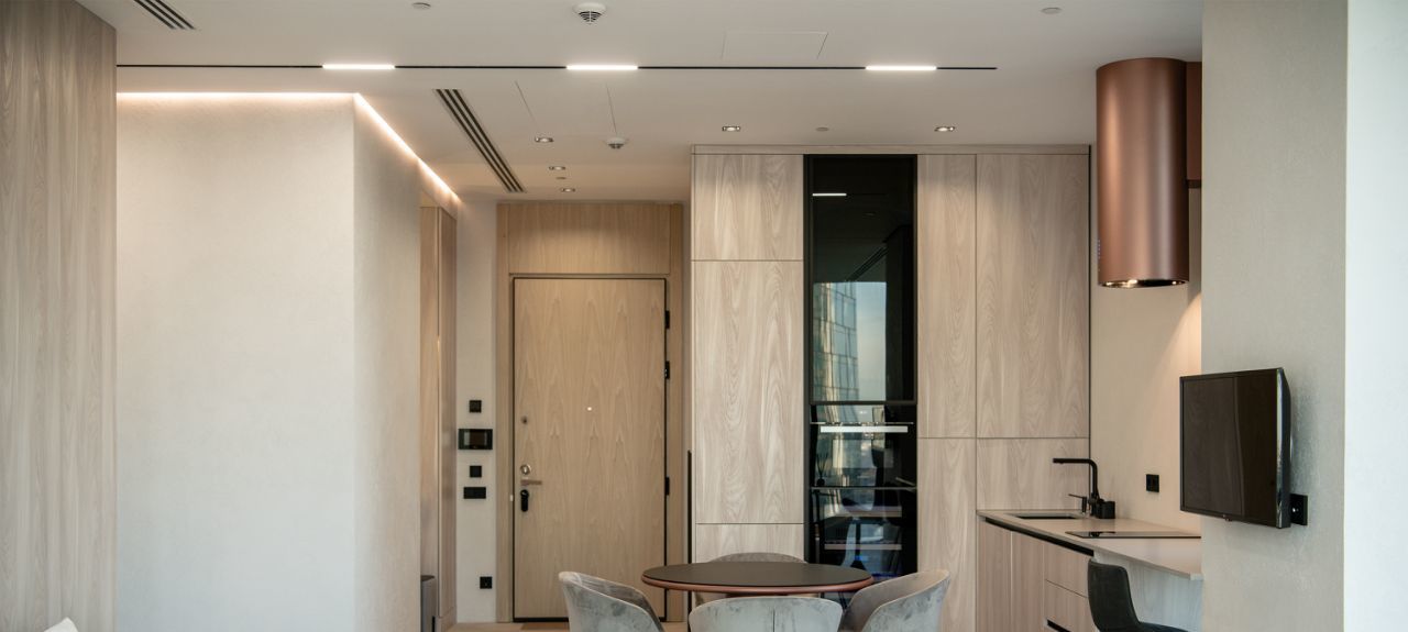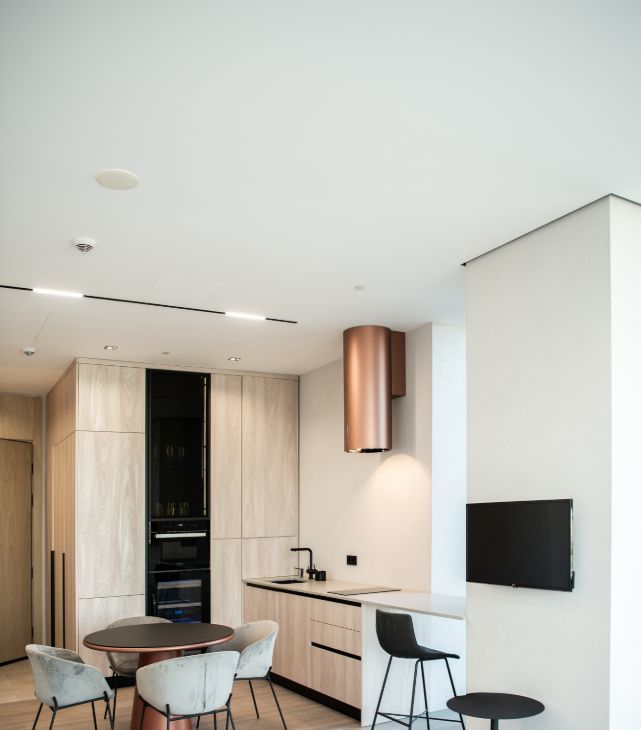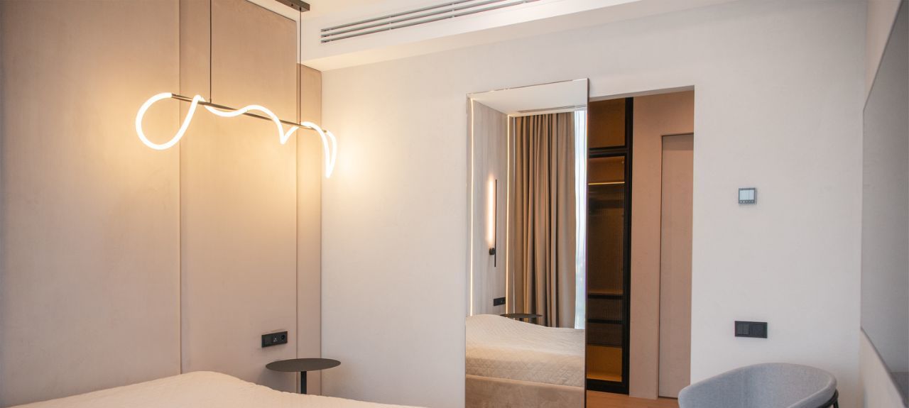 Апартамент полностью оснащён стандартным набором техники, включая винный шкаф, посудомоечную машину, сушильную машину, музыкальную колонку и выдвижной видеопроектор.