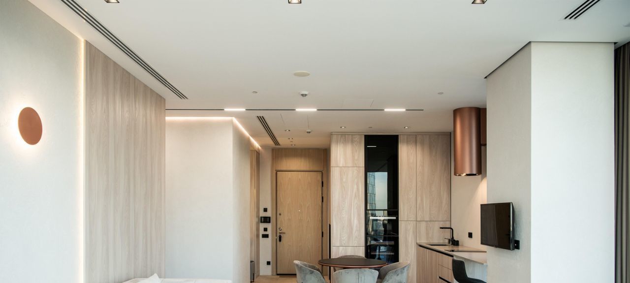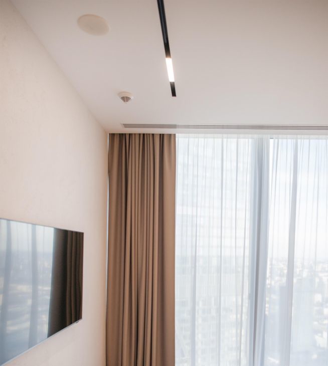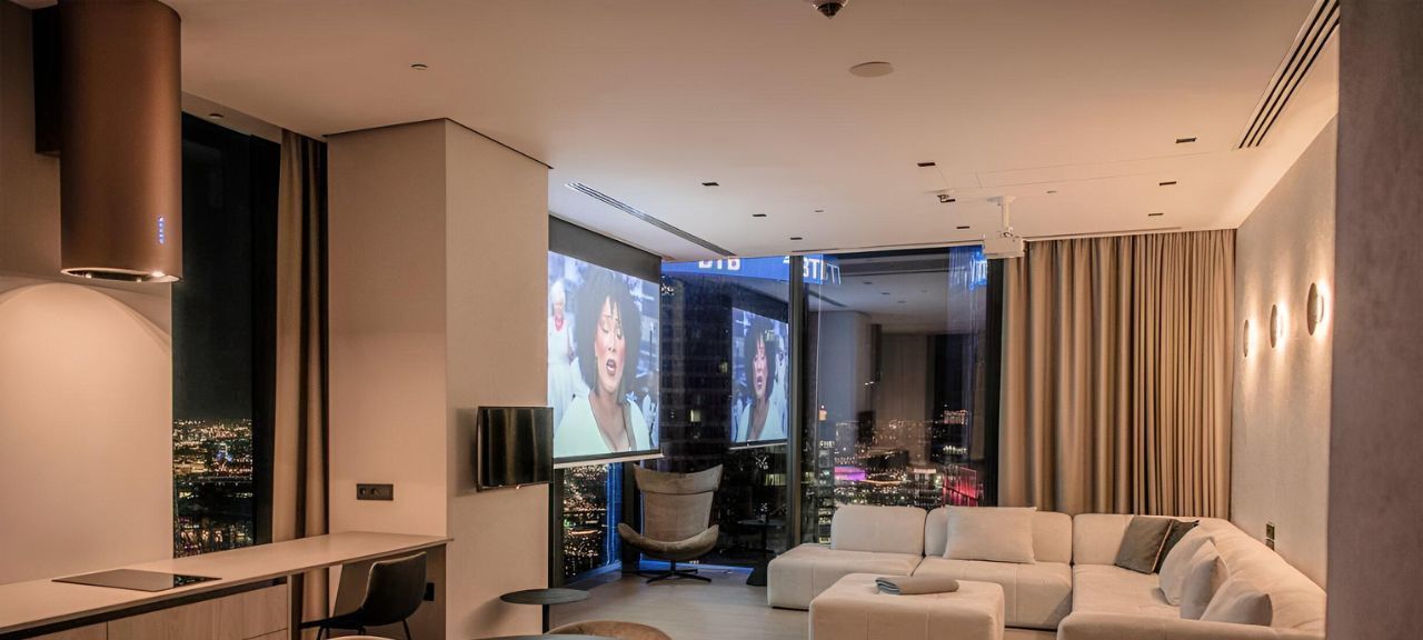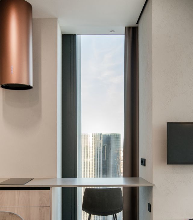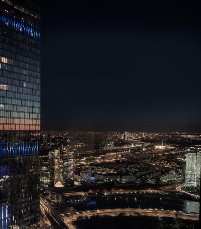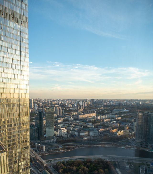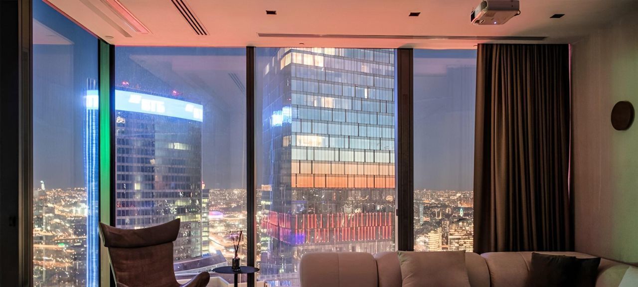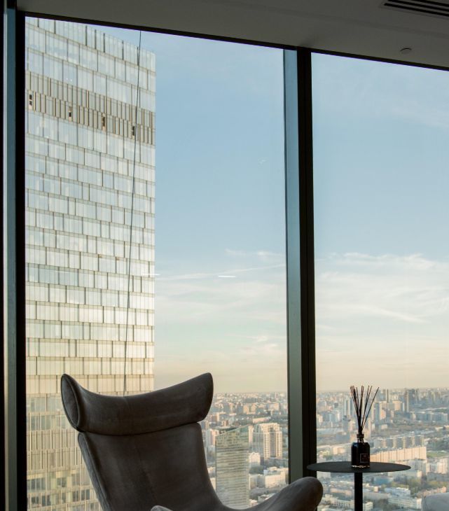 Видовой апартамент расположен на 62 этаже, вид на город и реку.
