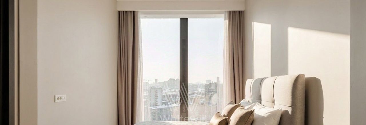 Апартаменты с 1 спальней общей площадью 61 м² в комплексе "Нева Тауэрс" на 10 этаже. Выполнена отделка в современном стиле в пастельных тонах. Панорамные окна наполняют пространство естественным светом и открывают вид на улицу. Спланирована кухня-гостиная, спальня с встроенными шкафами, ванная комната, прихожая. Апартаменты полностью меблированы и укомплектованы бытовой техникой Bosch. Установлена система вентиляции и кондиционирования воздуха.