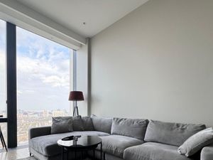 Эта изысканная резиденция площадью 62 кв.м. с потолками 3,9 м расположена на 13 этаже, откуда открывается панорамный вид на динамичную городскую жизнь.