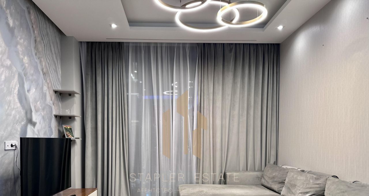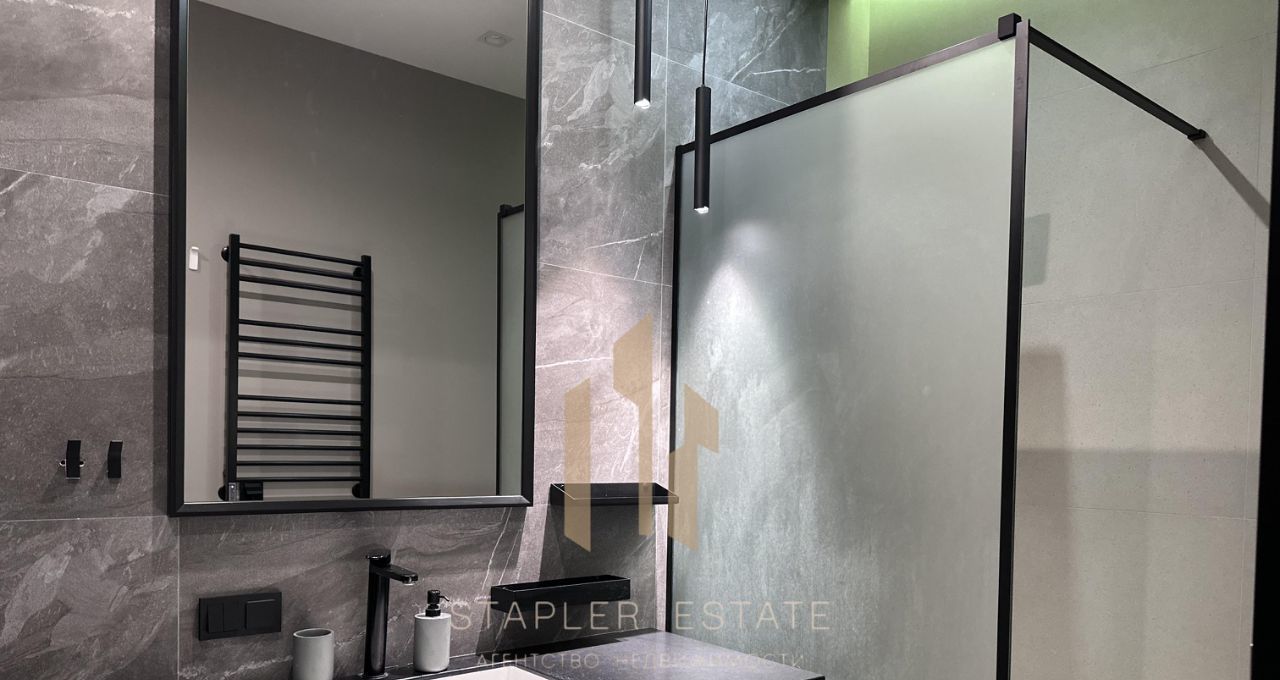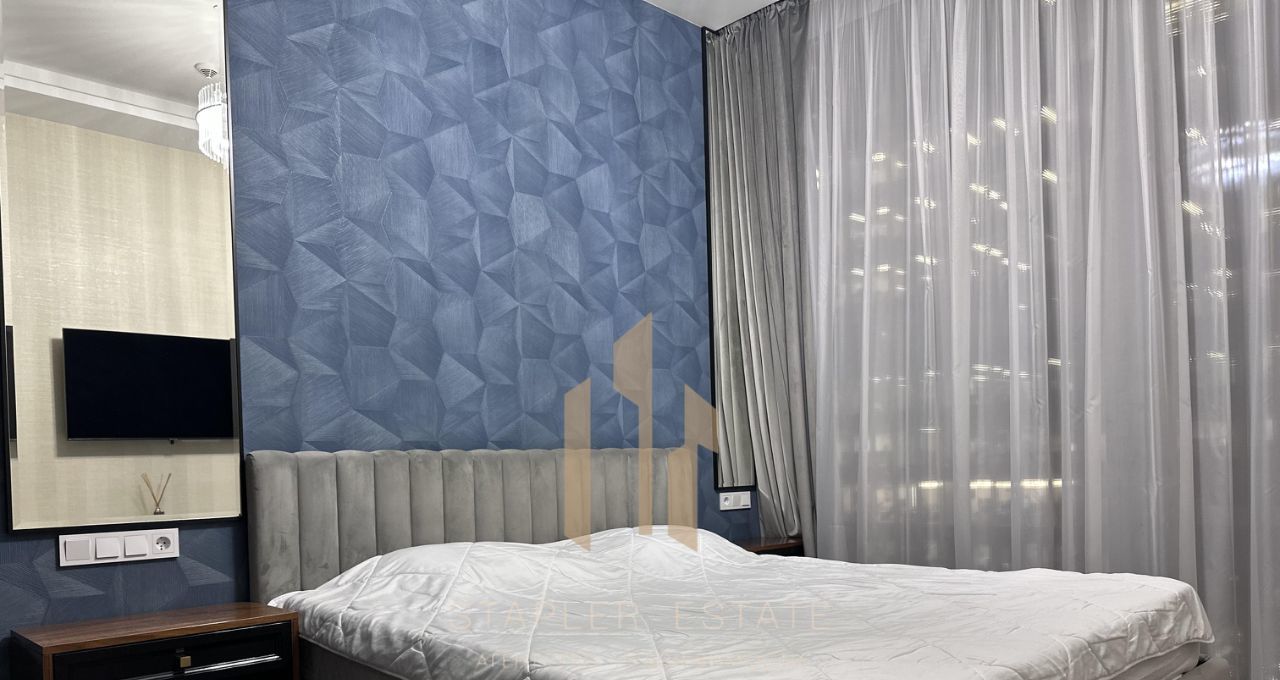 В апартаменте выполнен качественный ремонт. Просторная кухня площадью 25 кв. м оснащена необходимой техникой: холодильником, посудомоечной машиной и стиральной машиной. Для вашего удобства в комнате и на кухне есть мебель, а в ванной комнате установлена душевая кабина.
