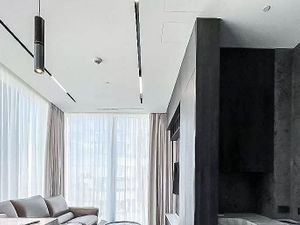Панорамное остекление открывает захватывающие виды на столицу, наполняя пространство естественным светом и энергией.
