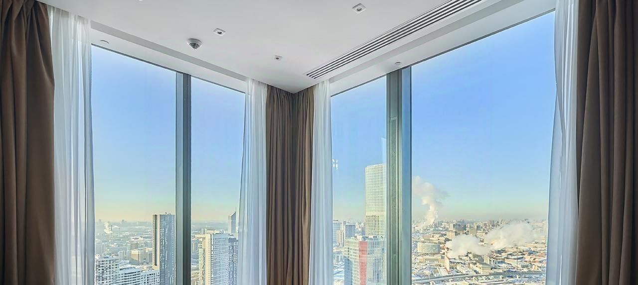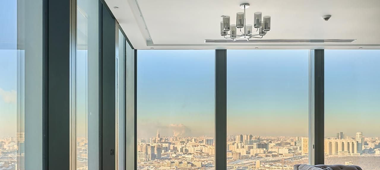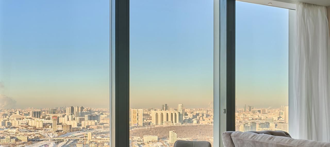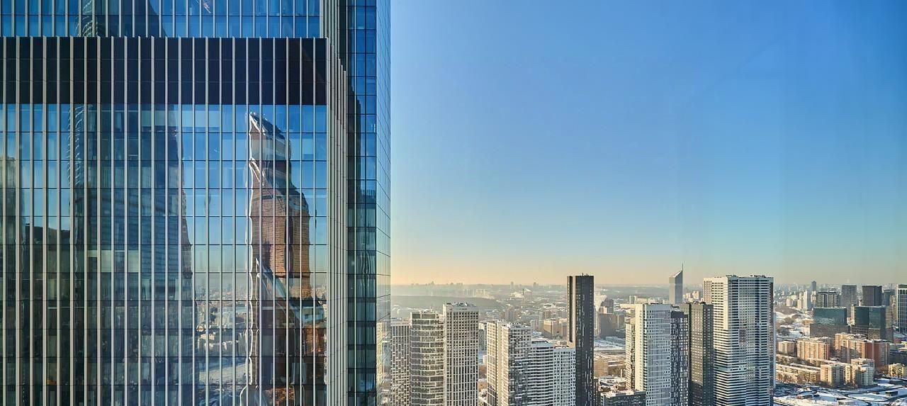 Панорамное остекление от пола до потолка открывает впечатляющий вид на западную часть города и завораживающие закаты над мегаполисом.