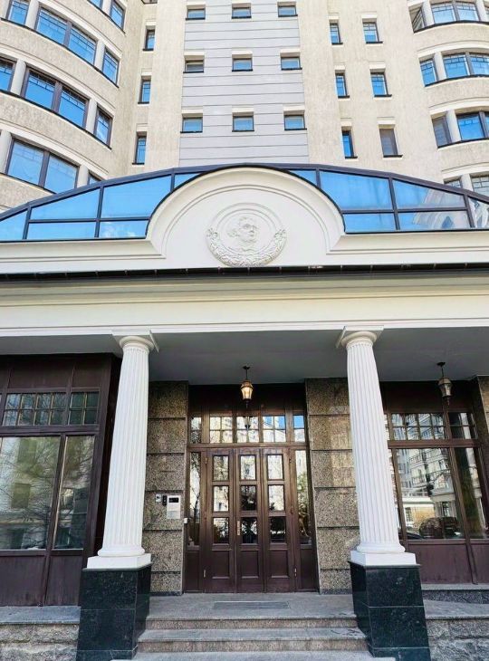 Дом выполнен в стиле австрийской классики, с высокими потолками и дорогой отделкой фасадов, двор оформлен как ландшафтный парк с фонтаном и зонами отдыха.