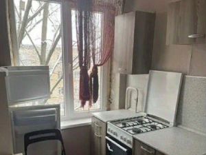 На кухне и в комнате есть необходимая мебель, а также установлены холодильник, телевизор и стиральная машина.