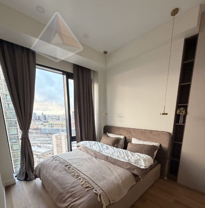 Сдается стильная 2-комнатная квартира площадью 35 м² в жилом комплексе премиум-класса Hide в районе Раменки ЗАО Москвы. Расположена на 35-м этаже 41-этажного дома 2024 года постройки с авторской архитектурой.