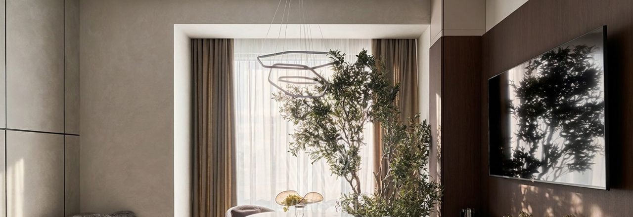 Видовая квартира с 1 спальней общей площадью 46 м² в комплексе премиум-класса Hide в Раменках. Интерьер оформлен приятных светло-бежевых тонах. Планировка: кухня-гостиная с обеденной зоной, спальня со своей ванной комнатой и гардеробной, прихожая с гардеробом.