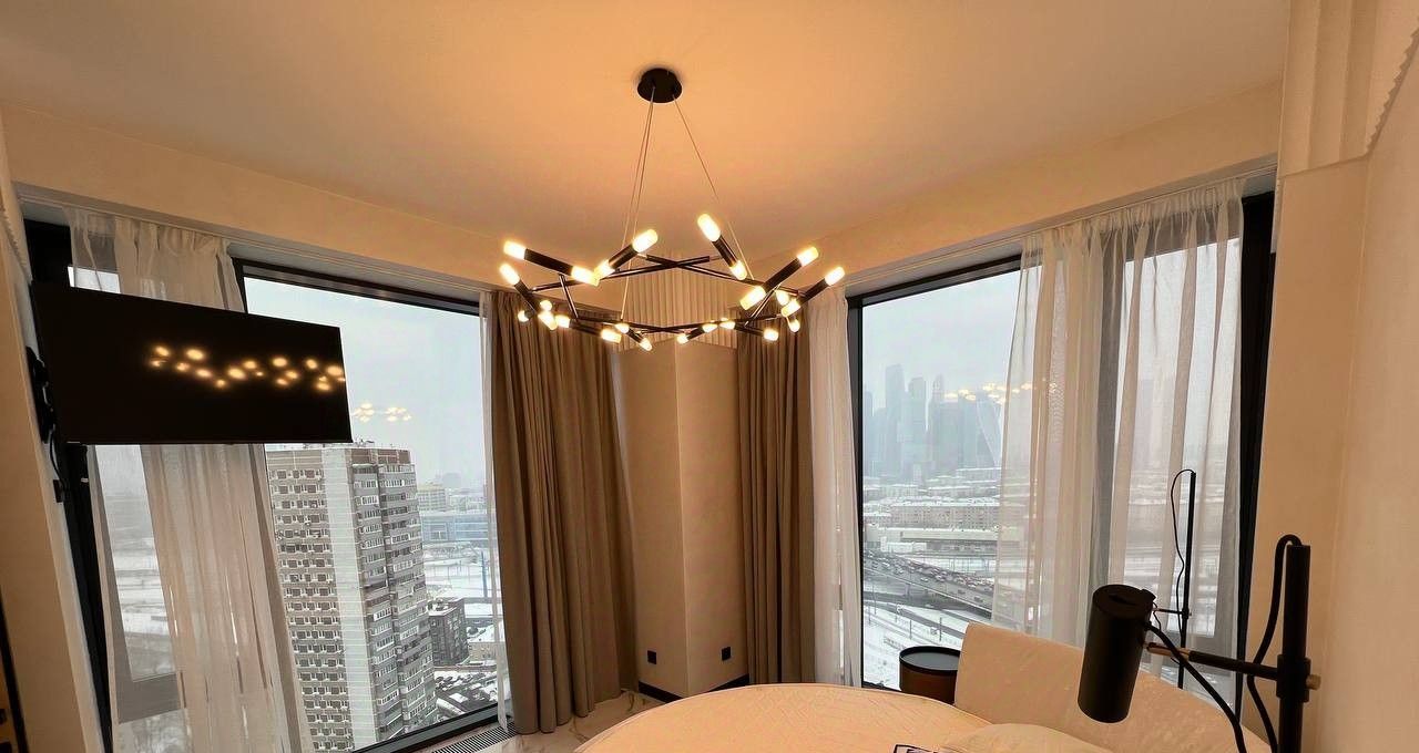 В жилой комнате также есть вся необходимая мебель и ШИКАРНЫЙ ВИД на Москву и на Москва-Сити.