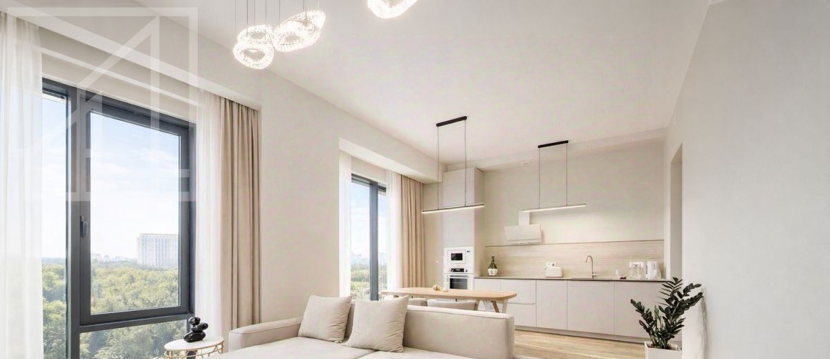 Высота потолков 3.2 м. Планировка: одна спальня, кухня-гостиная, холл, один санузел, гардеробная и лоджия, постирочная комната. В квартире выполнен качественный ремонт. Окна выходят на юго-западную сторону с панорамными видами.