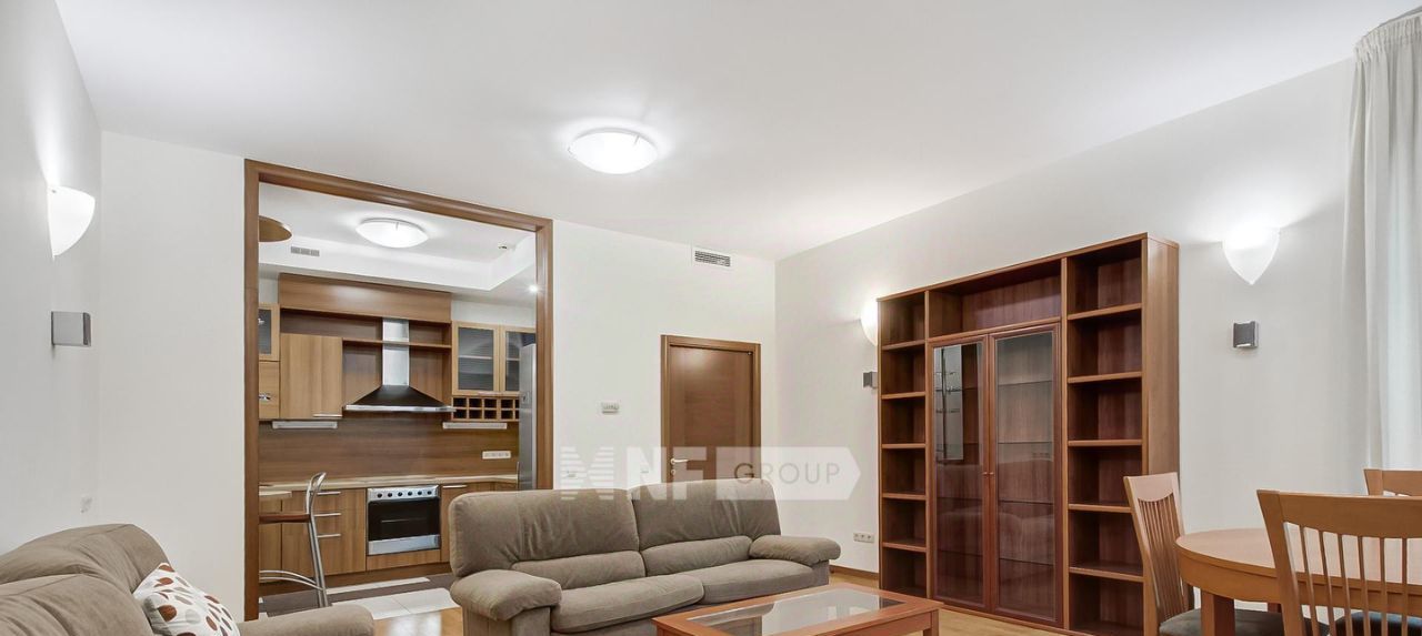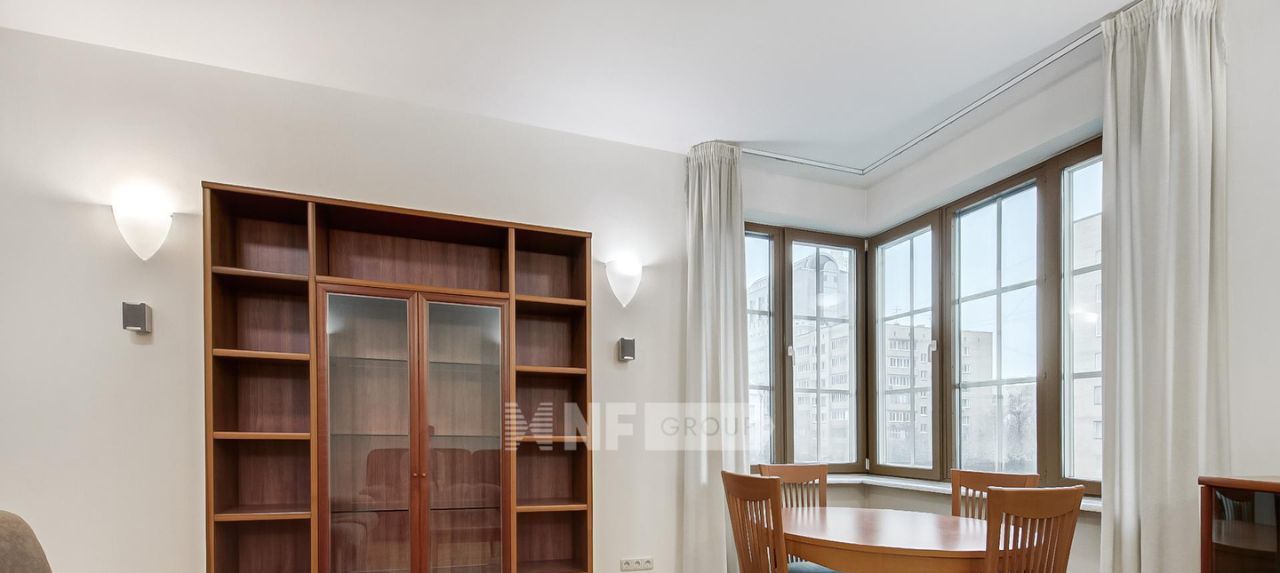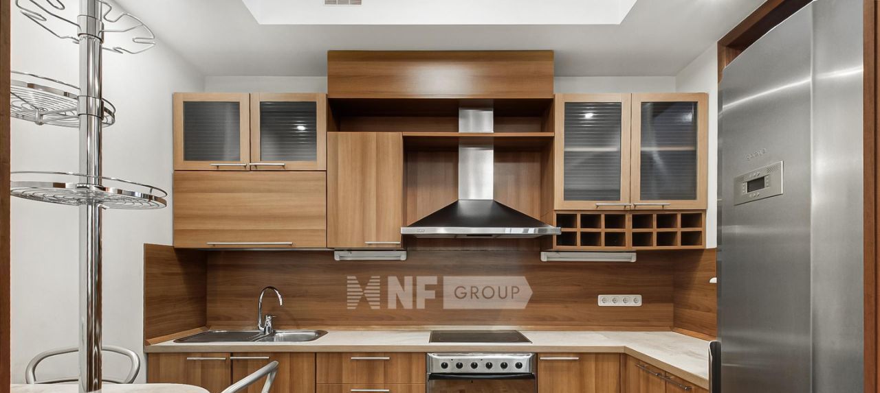 Выполнена отделка в классическом стиле, квартира меблирована и оснащена качественной бытовой техникой.