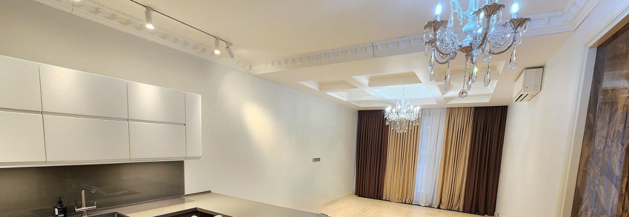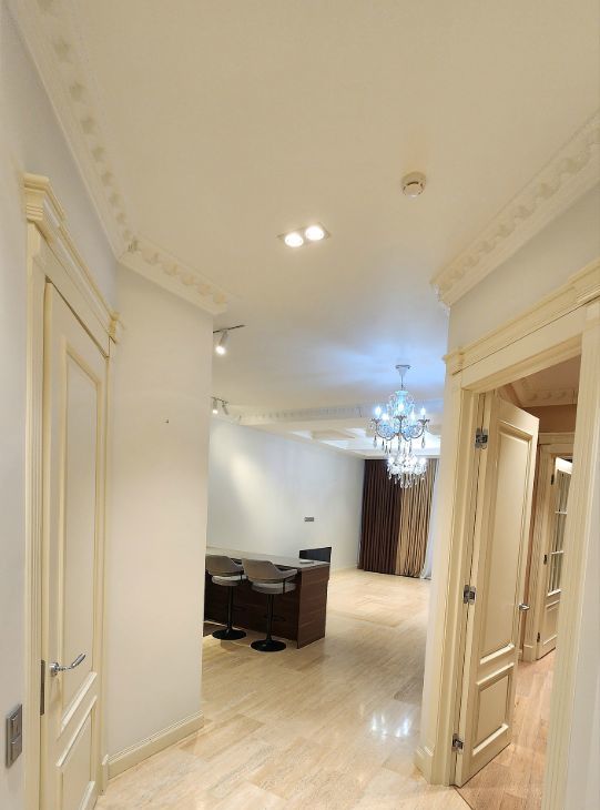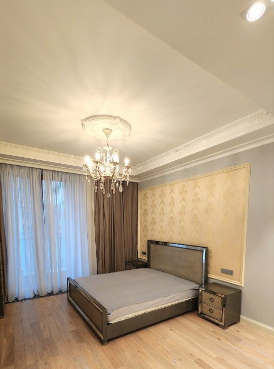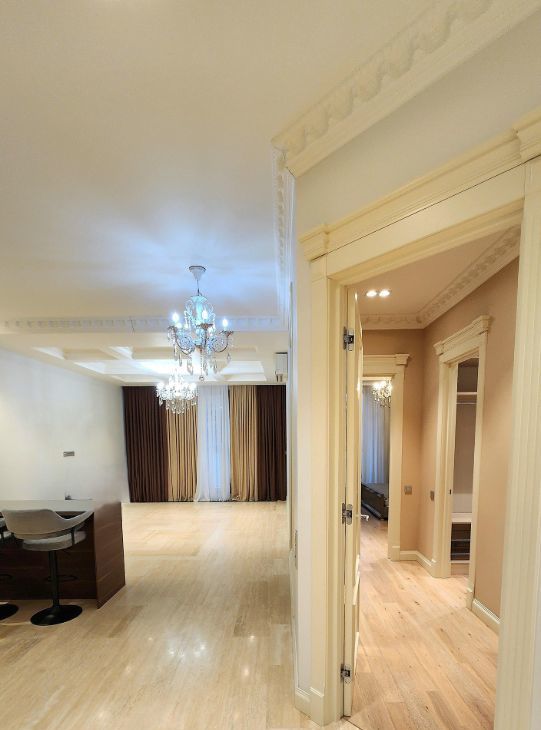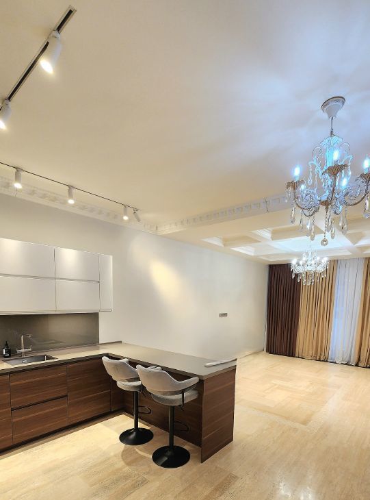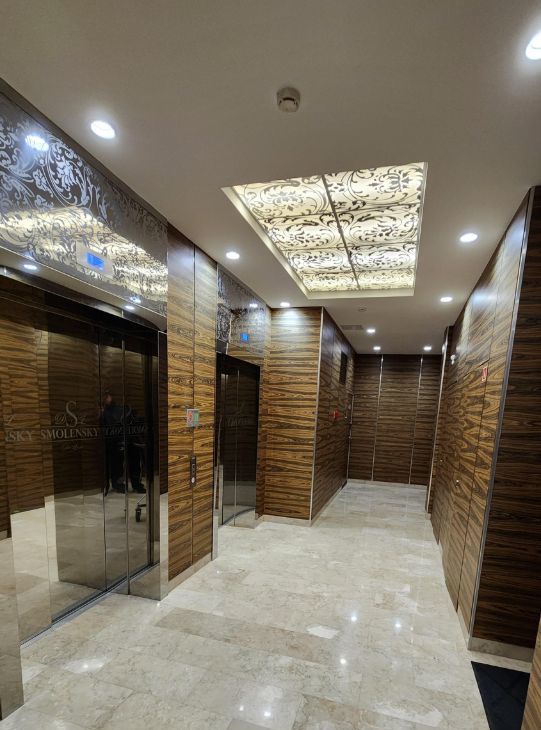 Двухкомнатная квартира в клубном доме Smolensky De Luxe. В квартире выполнена премиальная дизайнерская отделка с использованием натурального дерева, крупного керамогранита, и других дорогостоящих натуральных материалов. Планировка: общая зона кухни-гостиной, большая изолированная спальня, два санузла, 2 гардеробные и тех. комната. Две небольшие лоджии. Квартира полностью меблирована и оснащена всей необходимой бытовой техникой от ведущих европейских производителей. В квартире установлена система тёплых полов и кондиционирования. Вид из окон на Никольскую церковь . В подземном паркинге есть одно машино-место !