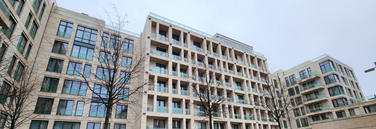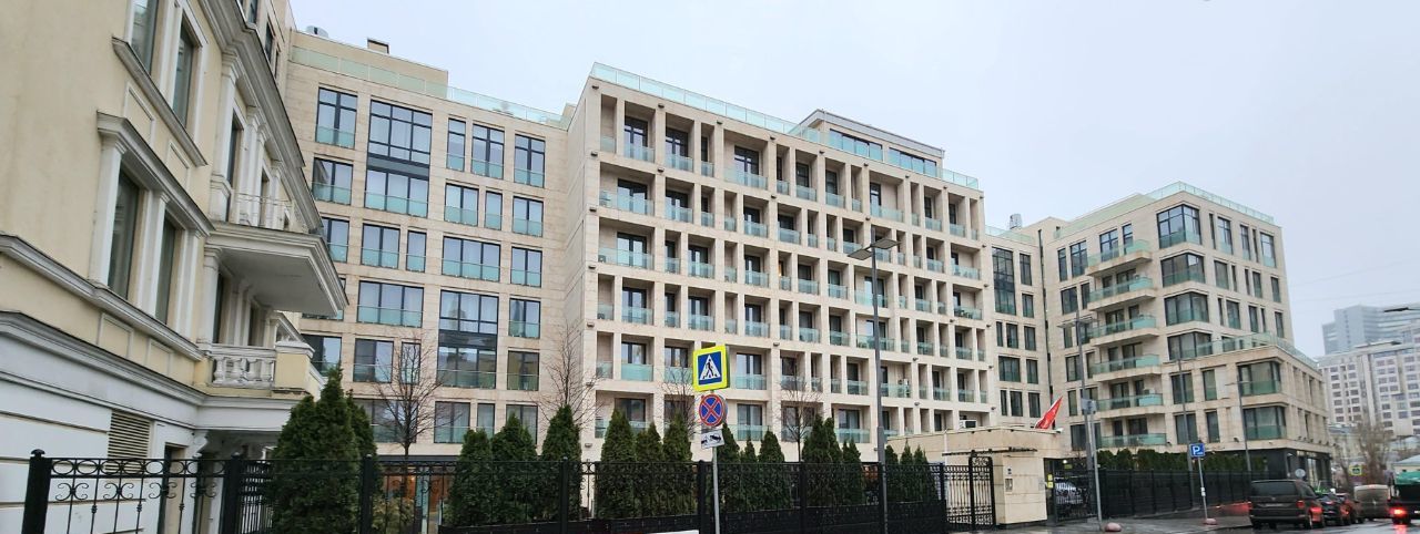 О доме. Клубный дом на семь этажей с четырьмя секциями и приватным внутренним пространством. Архитектуру создало бюро "Остоженка". Проект — финалист Urban Awards две тысячи двенадцатого года. Внутри — лобби со светлым камнем и деревом, охрана и консьерж, закрытая территория и подземный паркинг примерно на четыреста машин. Дом задуман для жизни на свету и в тишине переулков: большие окна, аккуратный двор, размеренный ритм центра за воротами.