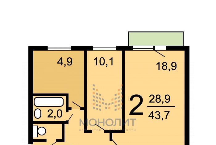 2-к кв. Москва 1-й Зборовский пер., 11 (43.7 м²)