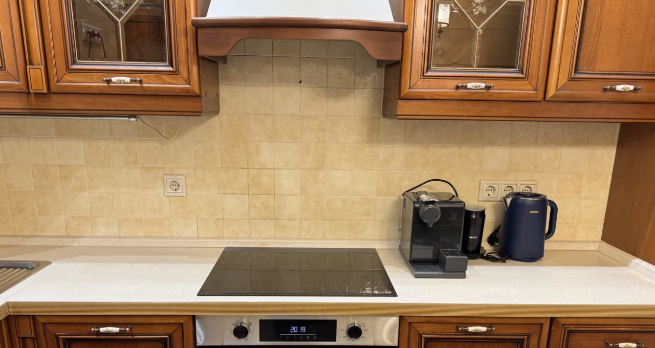 • кухня оборудована техникой: посудомоечная машина, духовка, вытяжка, холодильник, кофемашина