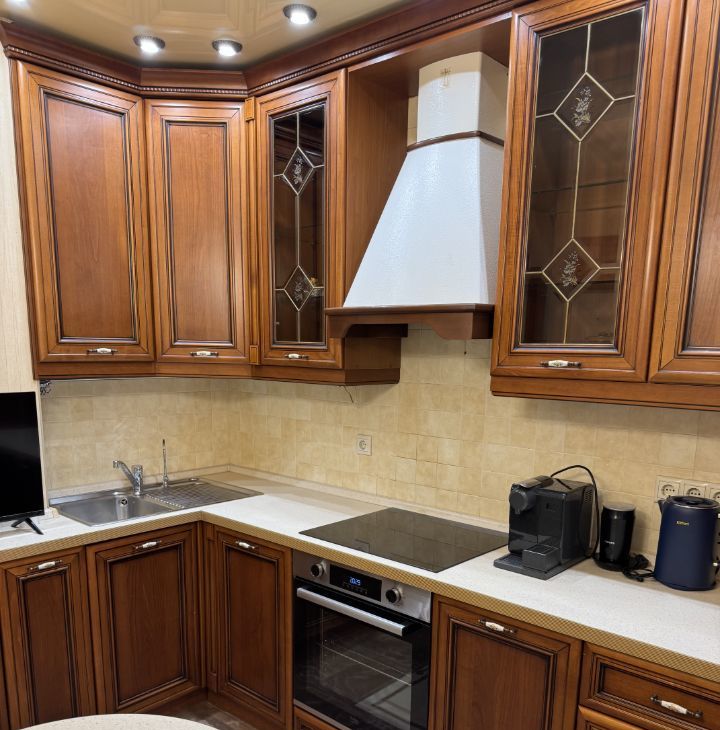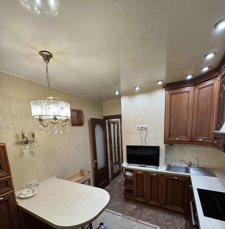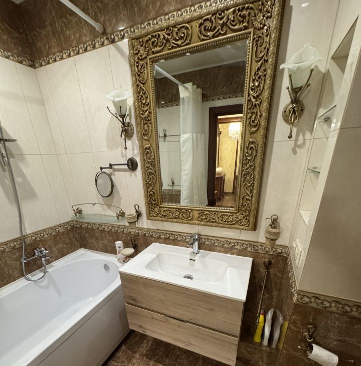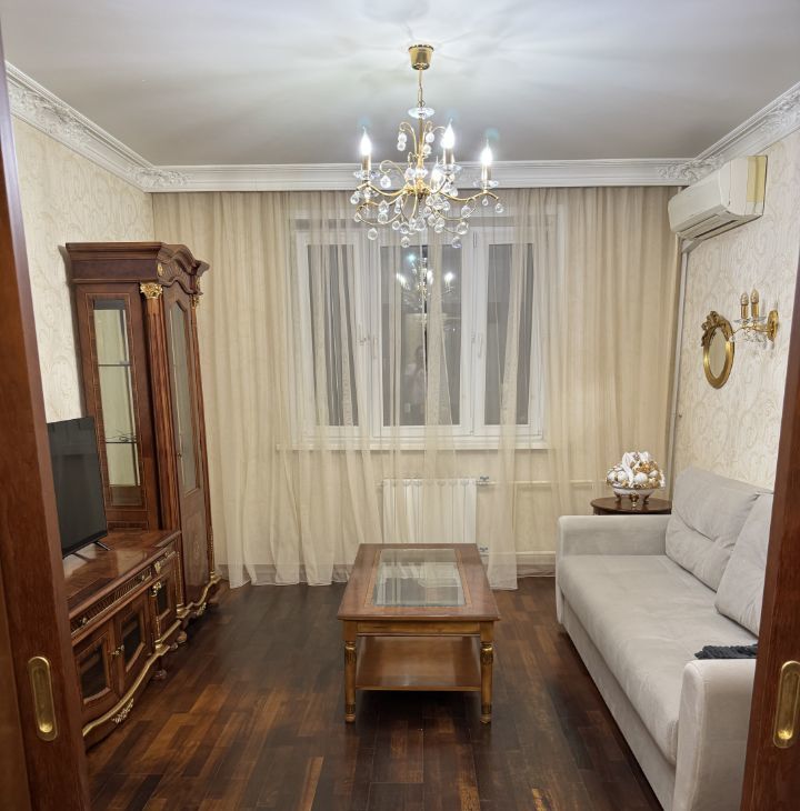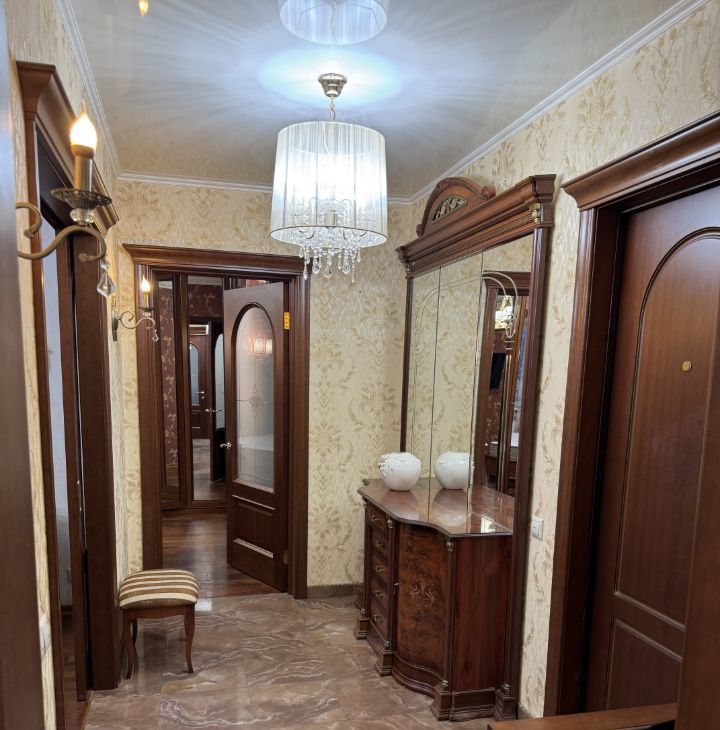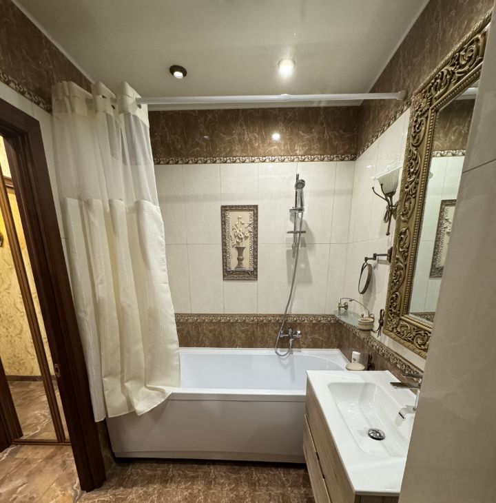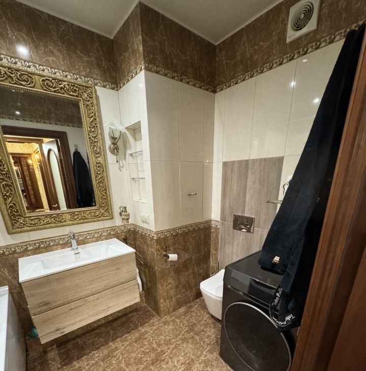 Квартира с качественным ремонтом в классическом стиле, полностью меблирована и готова для комфортного проживания на длительный срок.