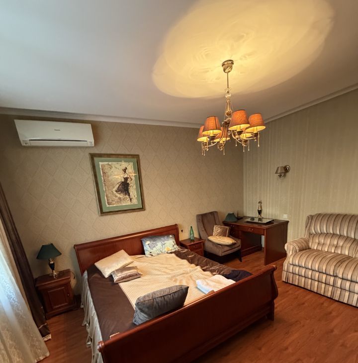 Две изолированные, светлые и просторные комнаты. Квартира полностью укомплектована мебелью — можно заехать и жить без лишних хлопот. Отдельная гардеробная — порядок и удобство хранения. Два санузла, что особенно комфортно для семьи или пары.