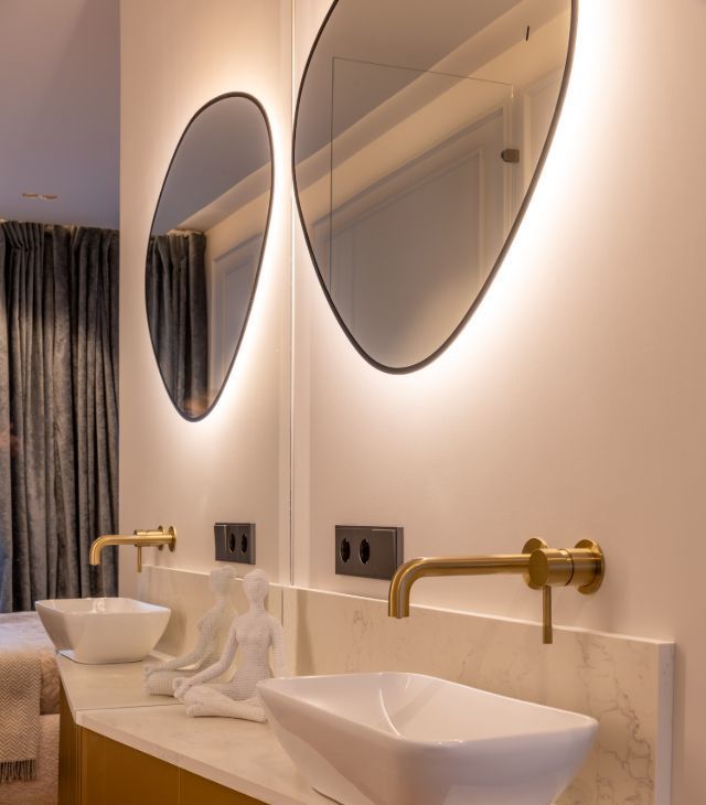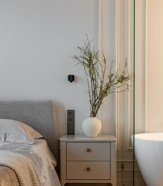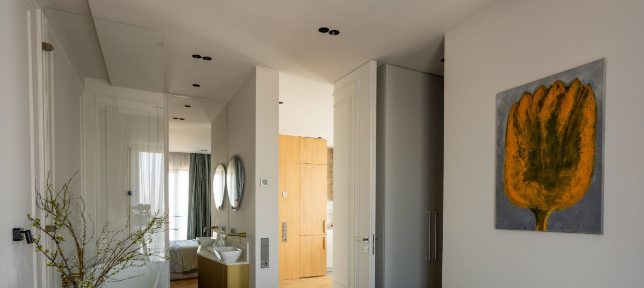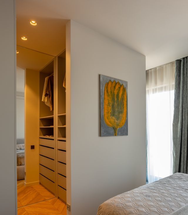 сценарии освещения, диммирование основным светом, управление шторами, регулирование температуры в гостиной, спальне, открывание/закрывание воды, кондиционирование и т.п. Заменены внутрипольные конвекторы отопления от застройщика и все инженерные системы, европейских брендов. Установлены датчики протечки на всю сантехнику и отопление, полная защита.