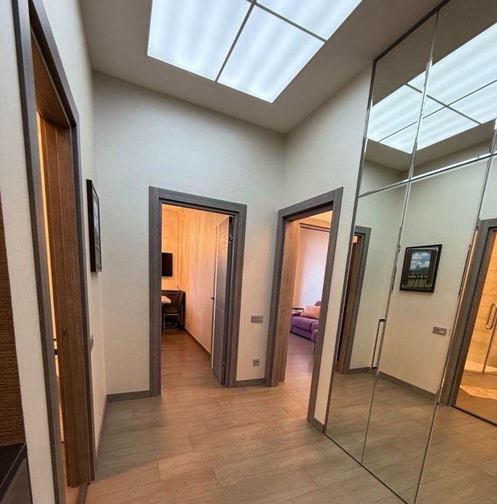 Роскошная входная группа, система контроля доступа, круглосуточная служба охраны, консьерж, дизайнерские холлы, подземный паркинг, лифты KONE.