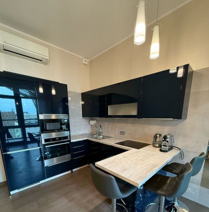 Стильная, светлая, уютная квартира на 10м этаже с видом на центр Москвы с ощущением простора за счет высоких потолков (3,1 м), с качественным ремонтом, мебелью и бытовой техникой. В каждой комнате установлены кондиционеры Mitsubishi и блэкаут шторы, есть водонагреватель на случай отключения горячей воды.