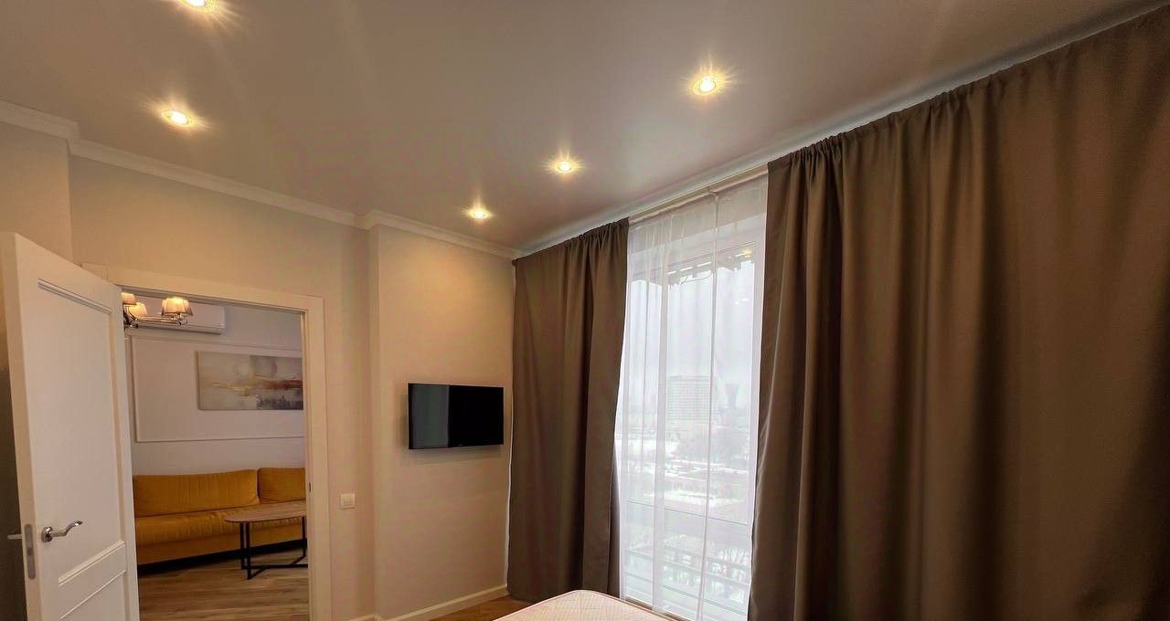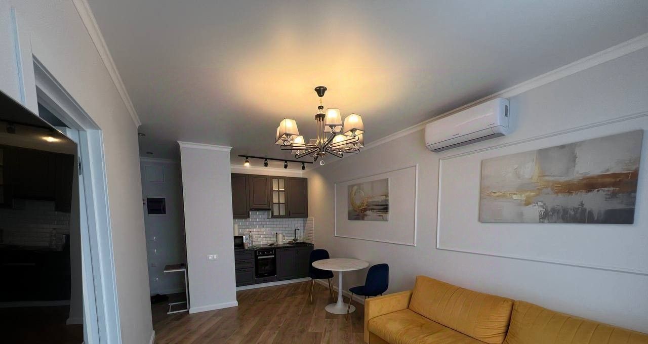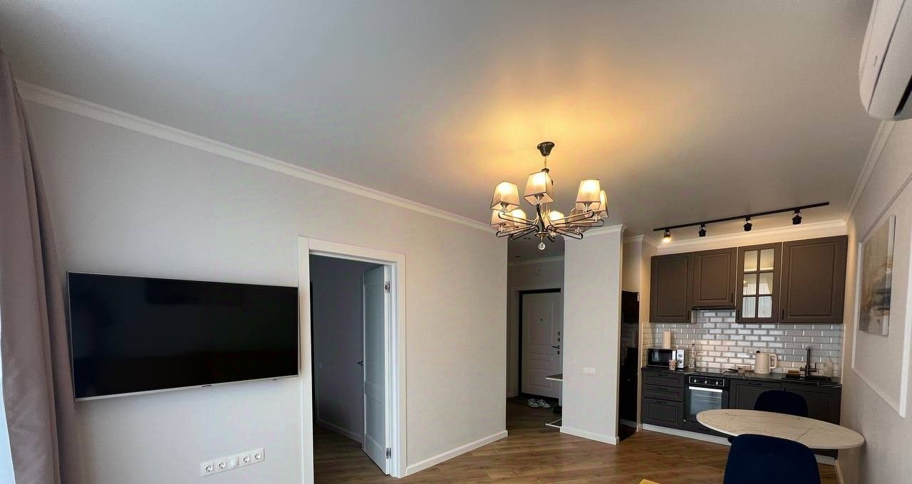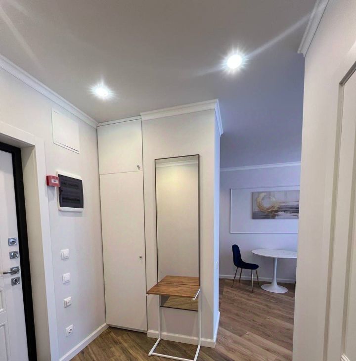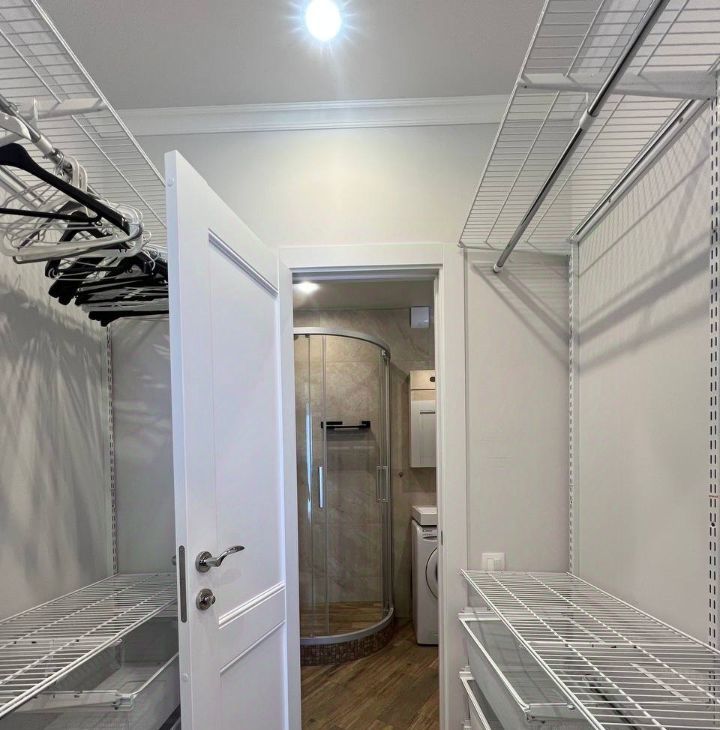 В квартире сделан дизайнерский ремонт, что придаёт ей стильный и современный вид. Здесь есть всё необходимое для жизни: кондиционер, холодильник, посудомоечная машина, телевизор и стиральная машина, просторная гардеробная (по секрету скажу, аж 2 гардероба). Комнаты меблированы, поэтому можно сразу заехать и начать жить. Совмещённый санузел оборудован душевой и выполнен в современном стиле.