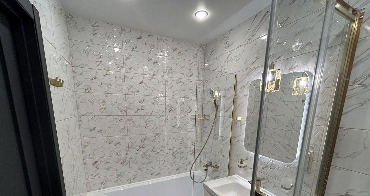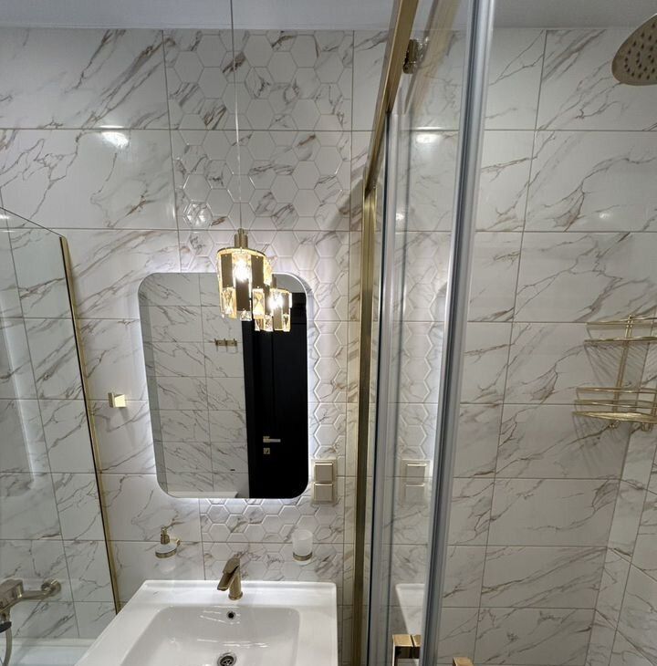 Санузел оборудован ванной и душевой кабиной. Дорогая и качественная сантехника.