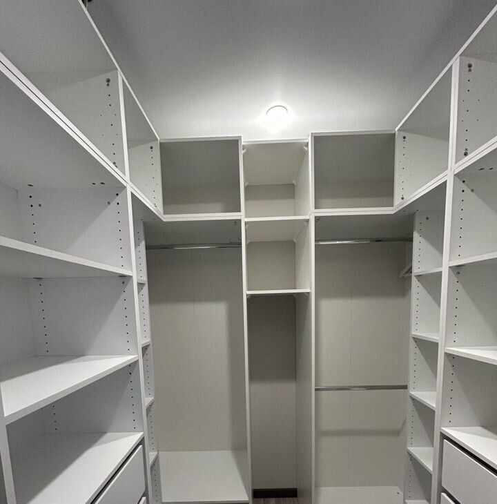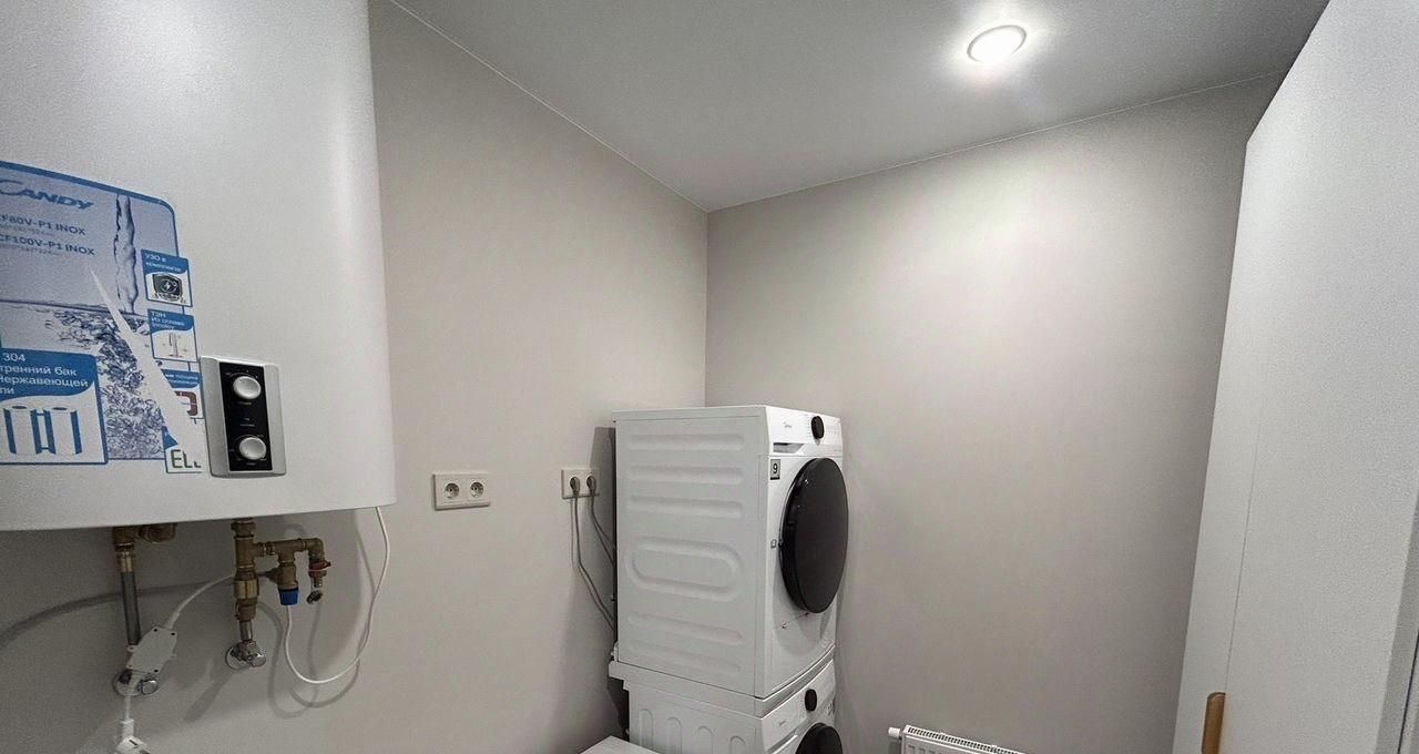 Построчная оборудована стиральной и сушильной машинами. Большое пространство для хранения.